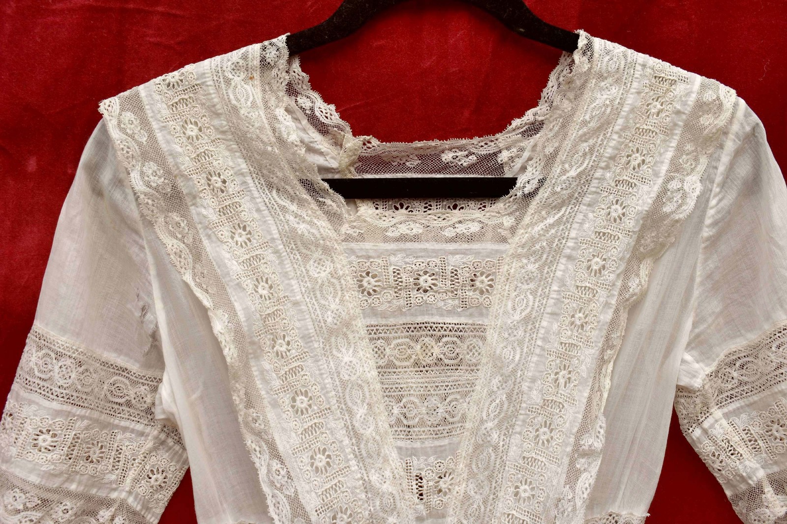 Edwardian Antique White Cotton and Lace Summer Dress - Sz Small - VG Condition