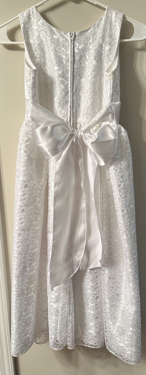 как выглядит Flower Girl Dress or First Communion size 12 White Lace Bow Rhinestone Made USA фото