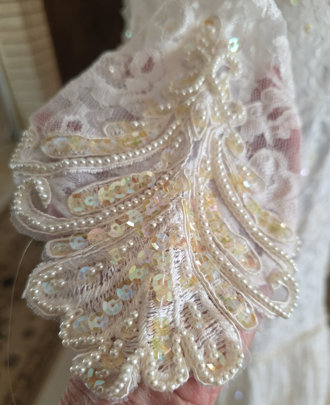как выглядит Wedding Gown Vintage 1980s Shirred Sides with train beaded sequined фото