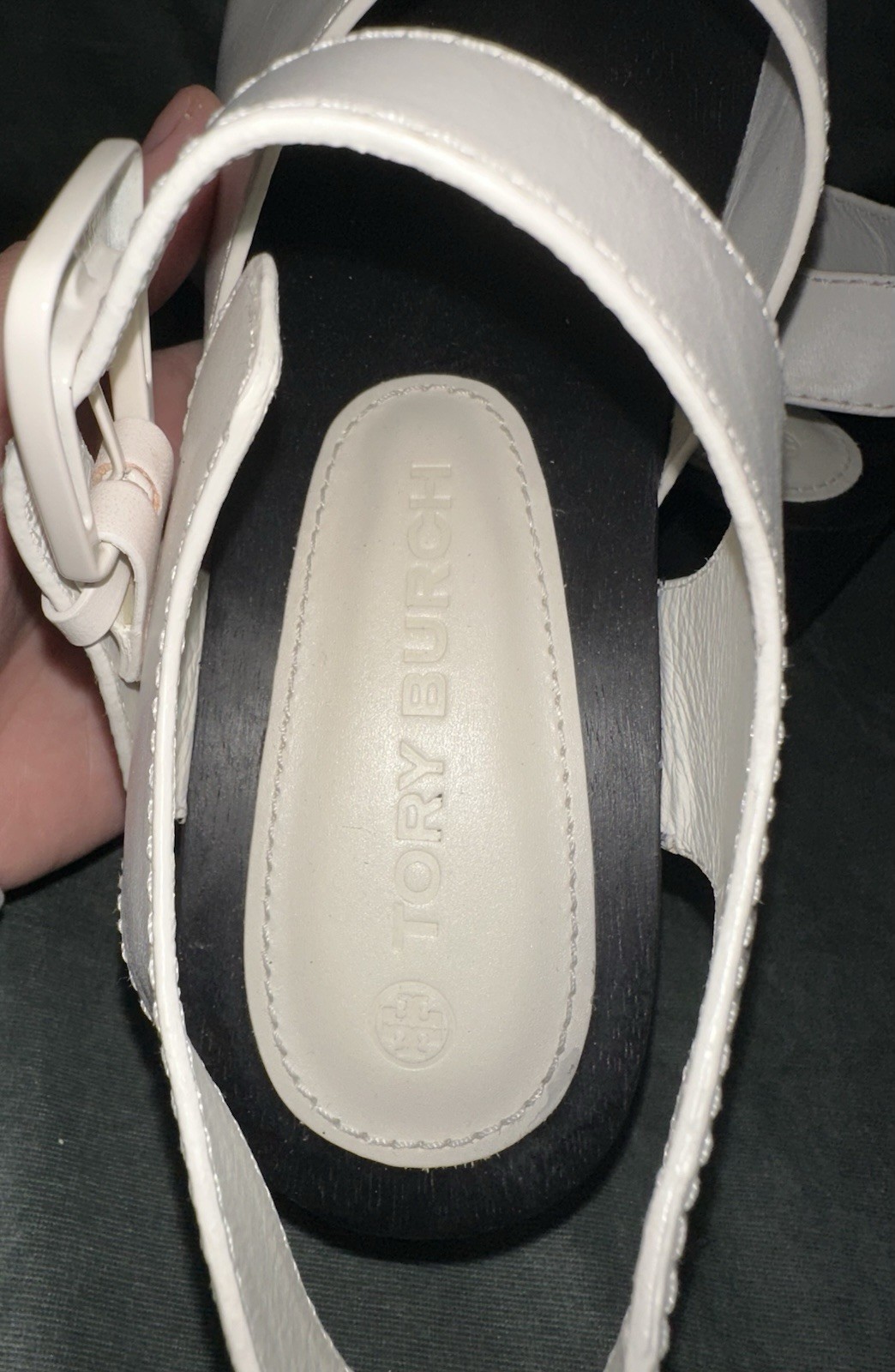 как выглядит Tory Burch Runway Lug Sole Clogs White Leather Platform Slingback Womens 8 фото