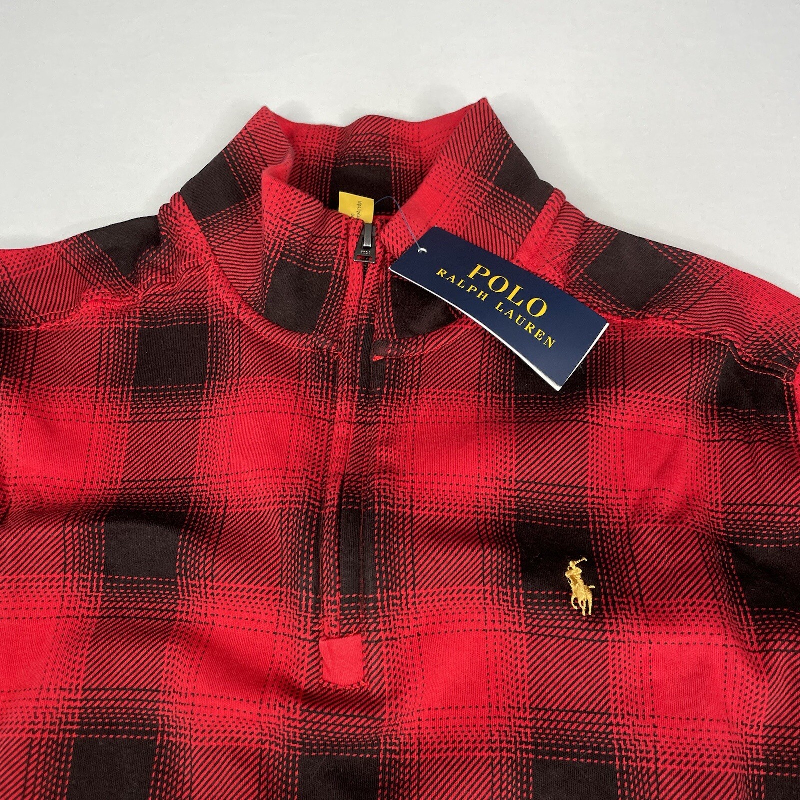 Polo Ralph Lauren Boys XL 18-20, Red/Black Check Plaid 1/4 Zip Sweater