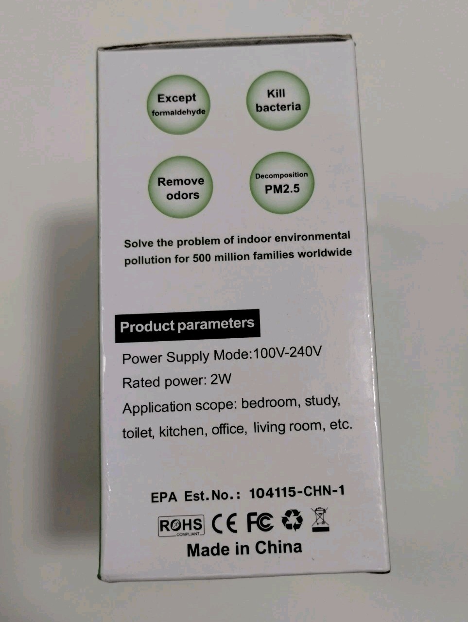 Contaminants Captured: Bacteria, Odors, Decomposition, Negative Ions, PM2.5, Purify, Sterilization