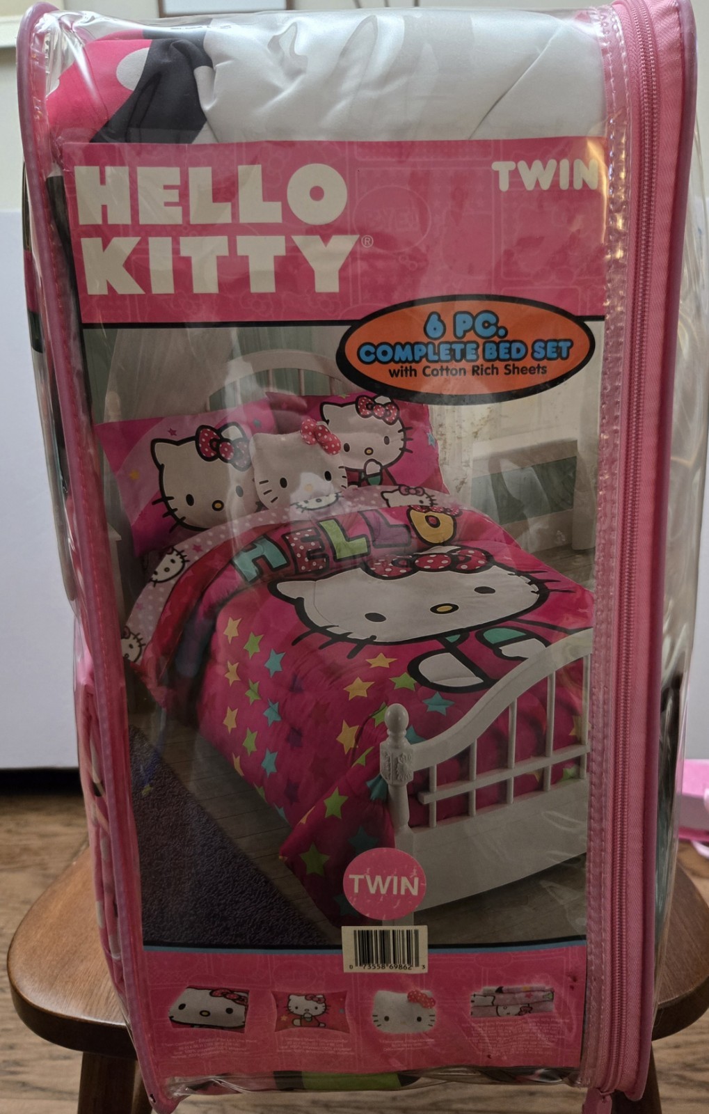 как выглядит Hello Kitty Born A Star Kids 6 Piece Reversible Comforter Bed in Bag Twin NEW фото