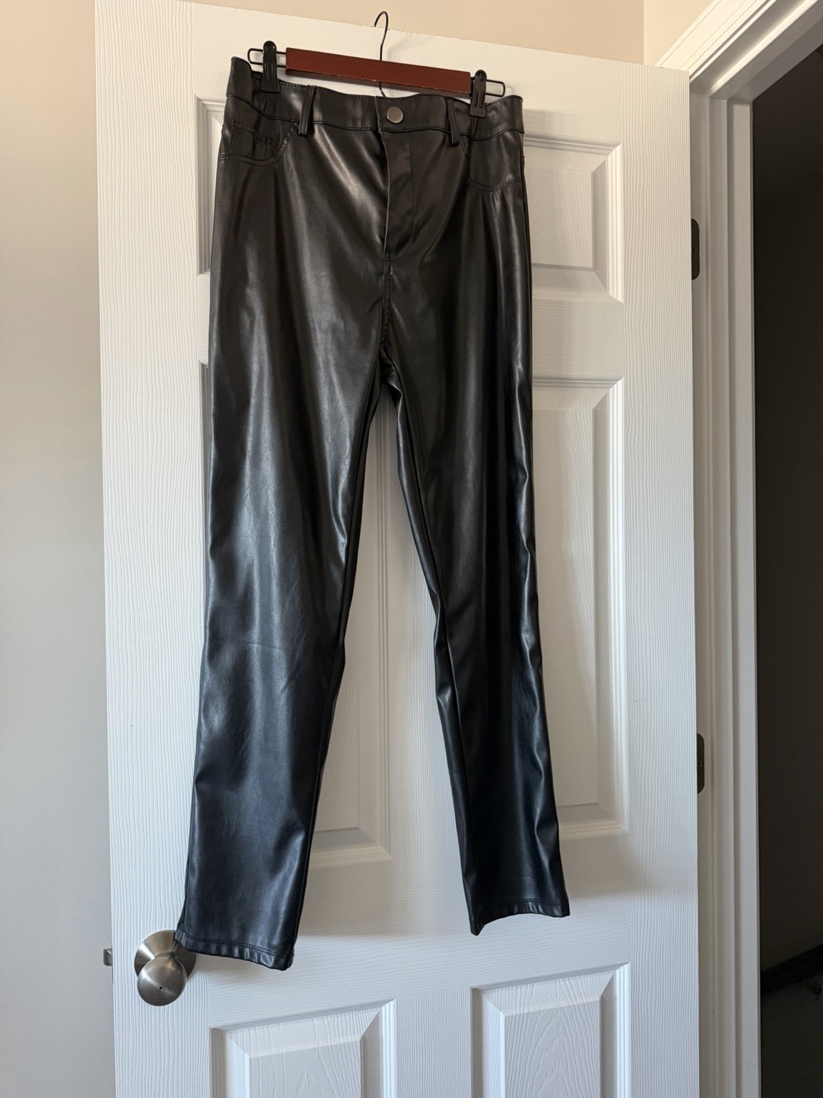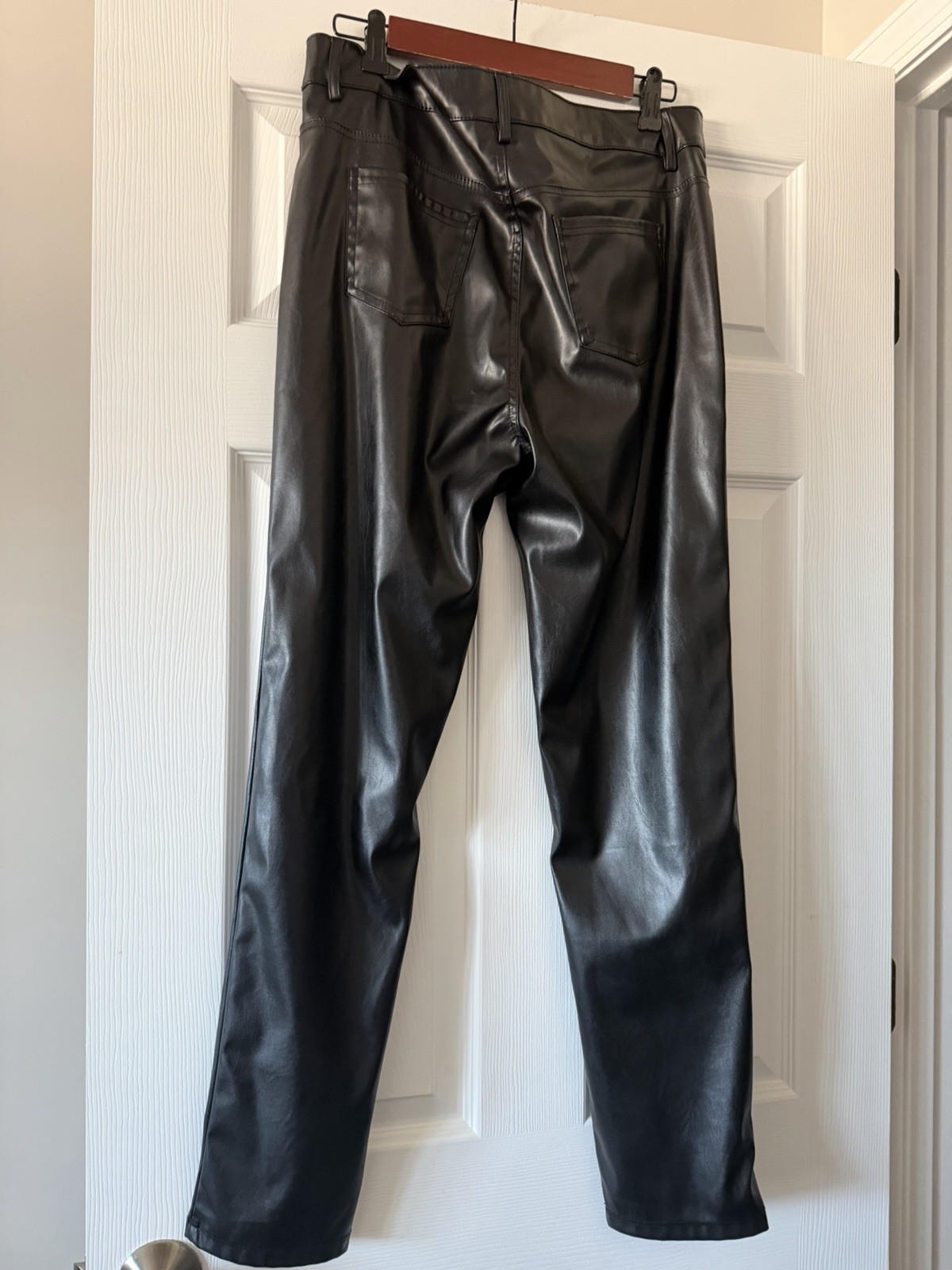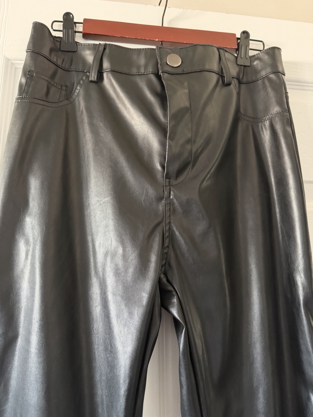 как выглядит Fashion Nova XL Black Faux Leather Pants Womens High Rise фото
