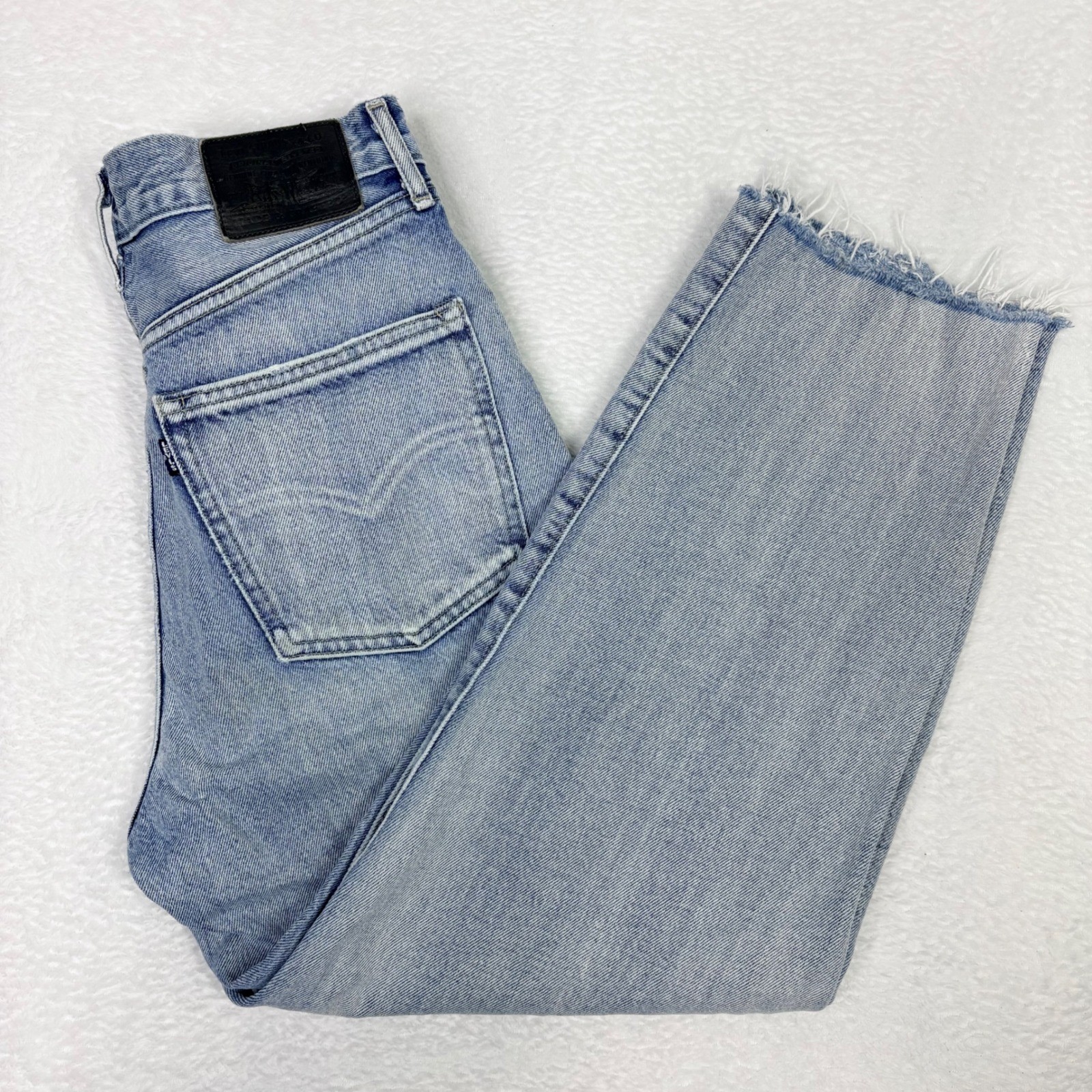 как выглядит Levis Made Crafted Barrel Crop Jeans Light Wash Distressed RAW HEM Size 25 фото