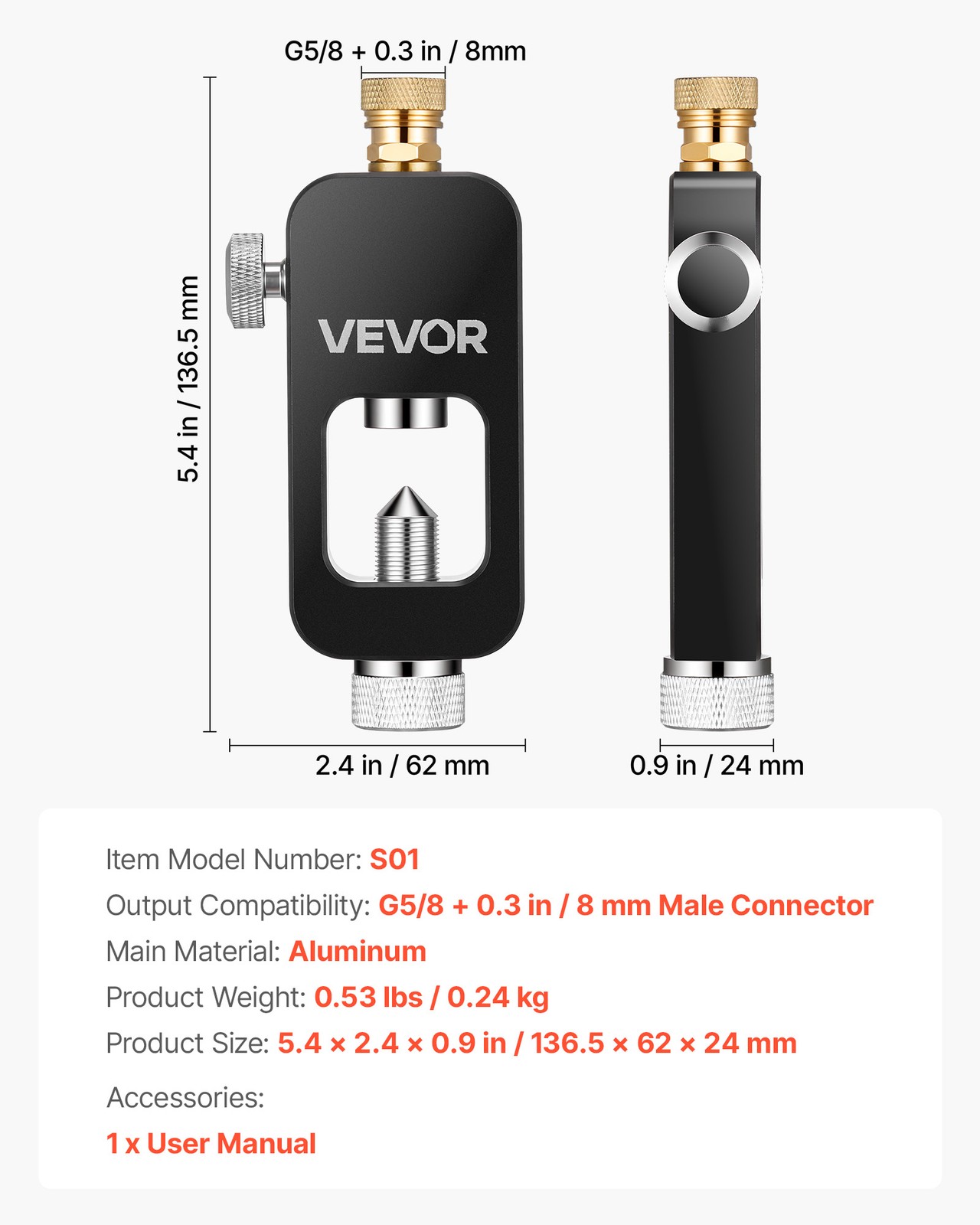 Output Compatibility: G5/8 + 0.3 in / 8 mm Male Connector