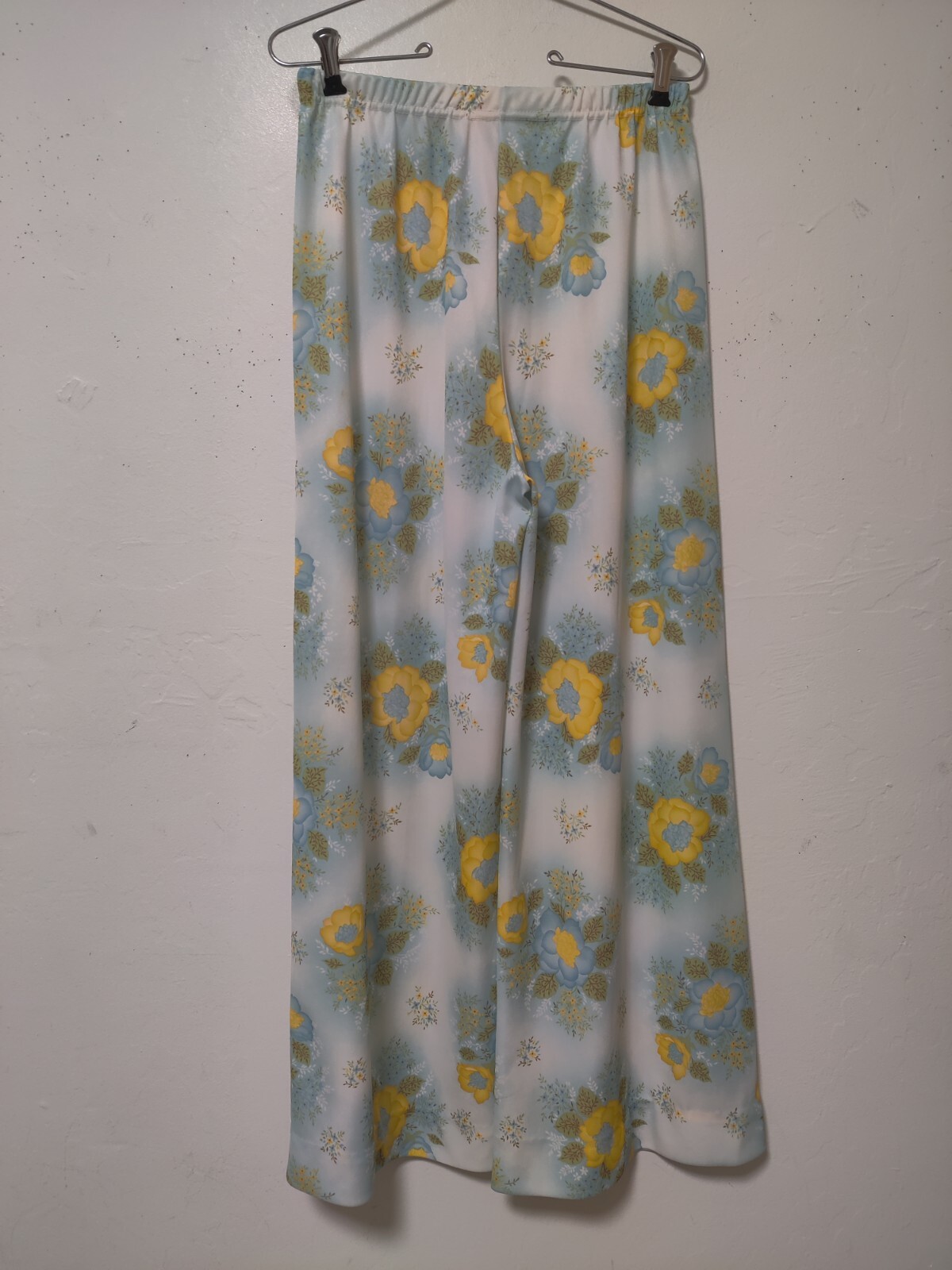 как выглядит Vintage 1960s Bright Floral Polyester Pants Size 14 EVC Wide Leg Blue Yellow фото