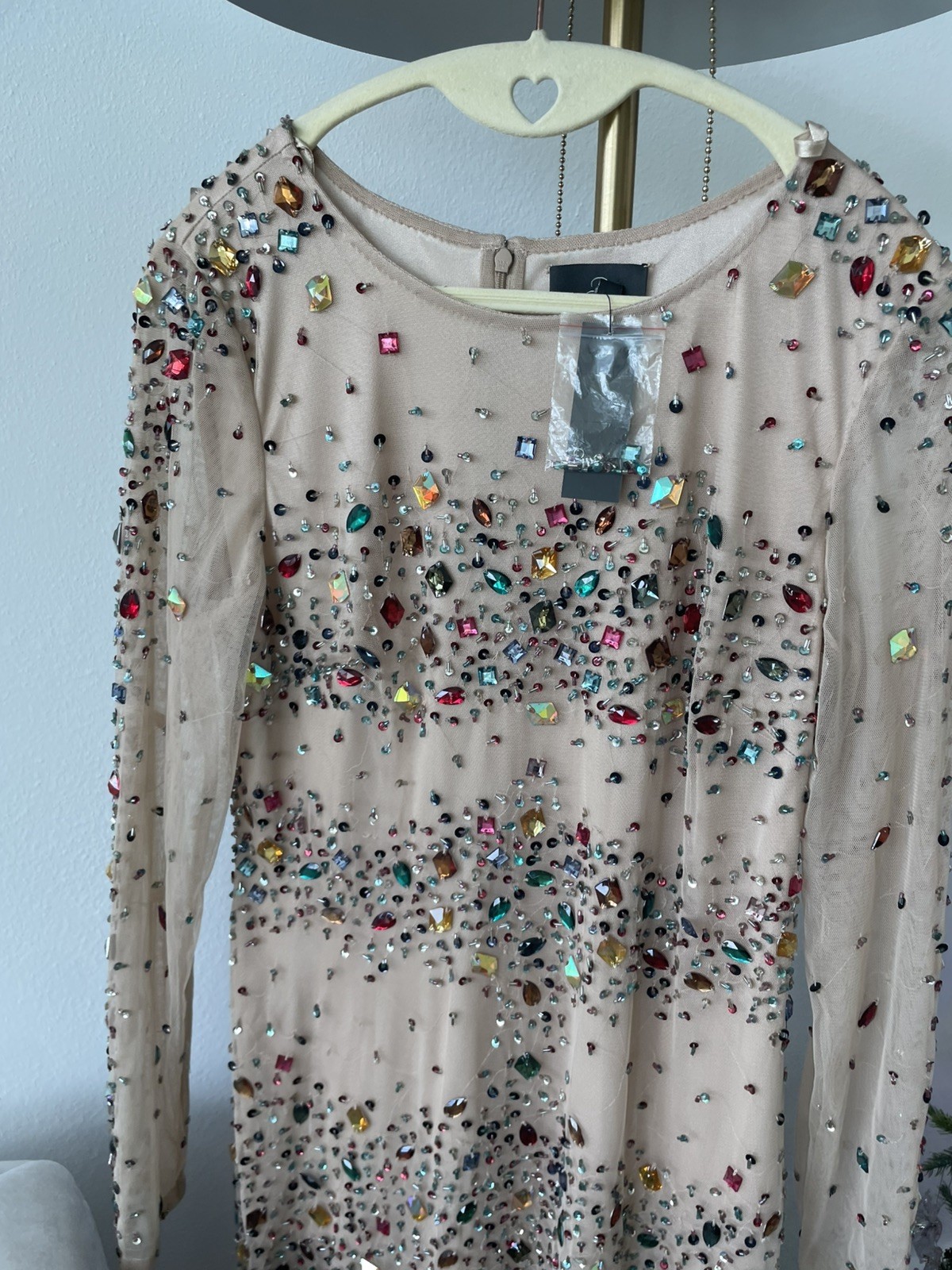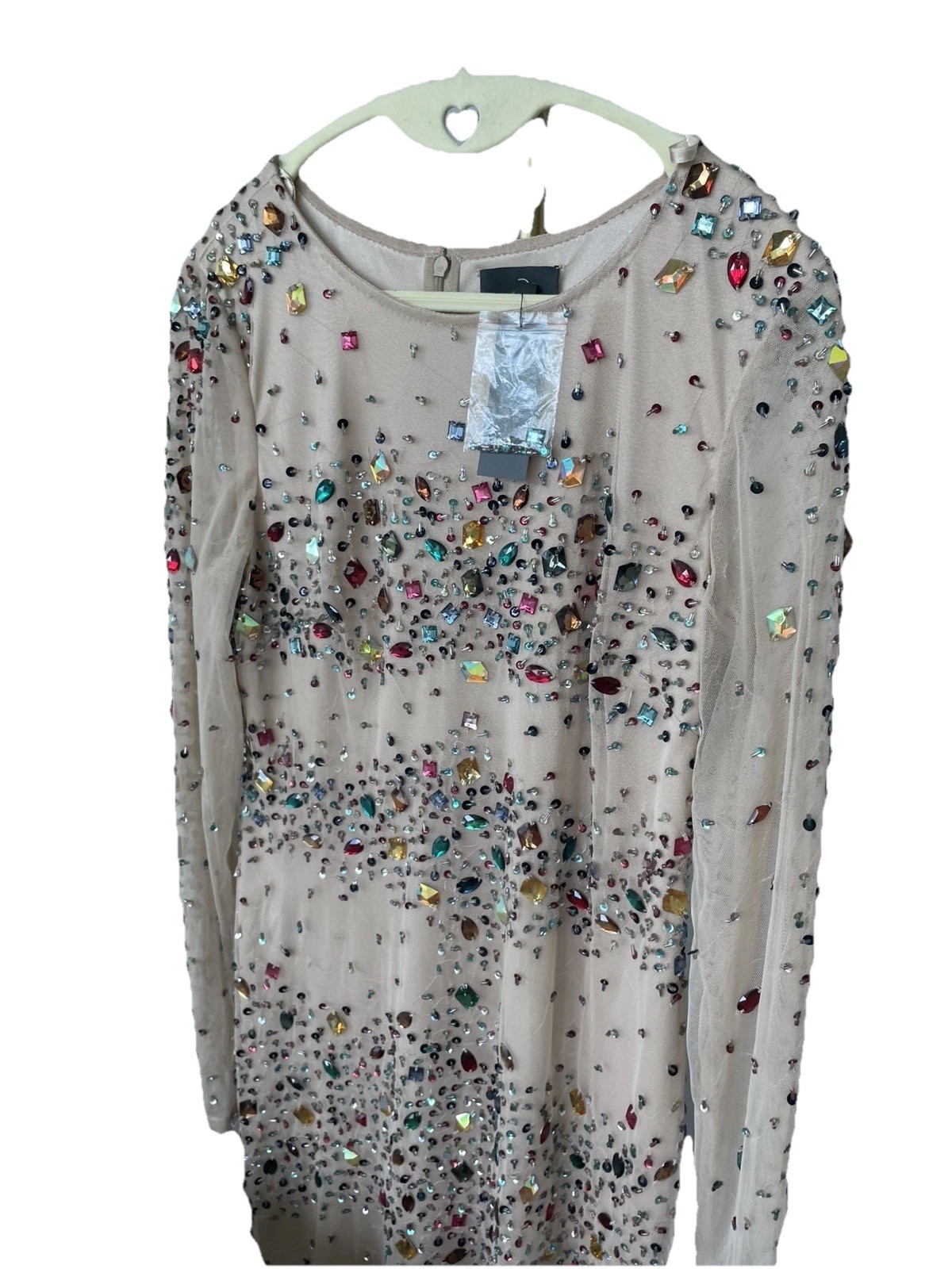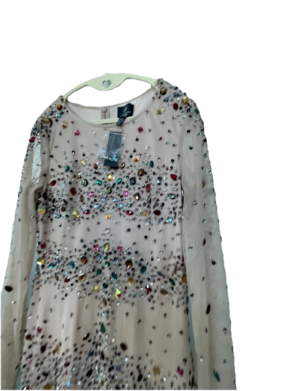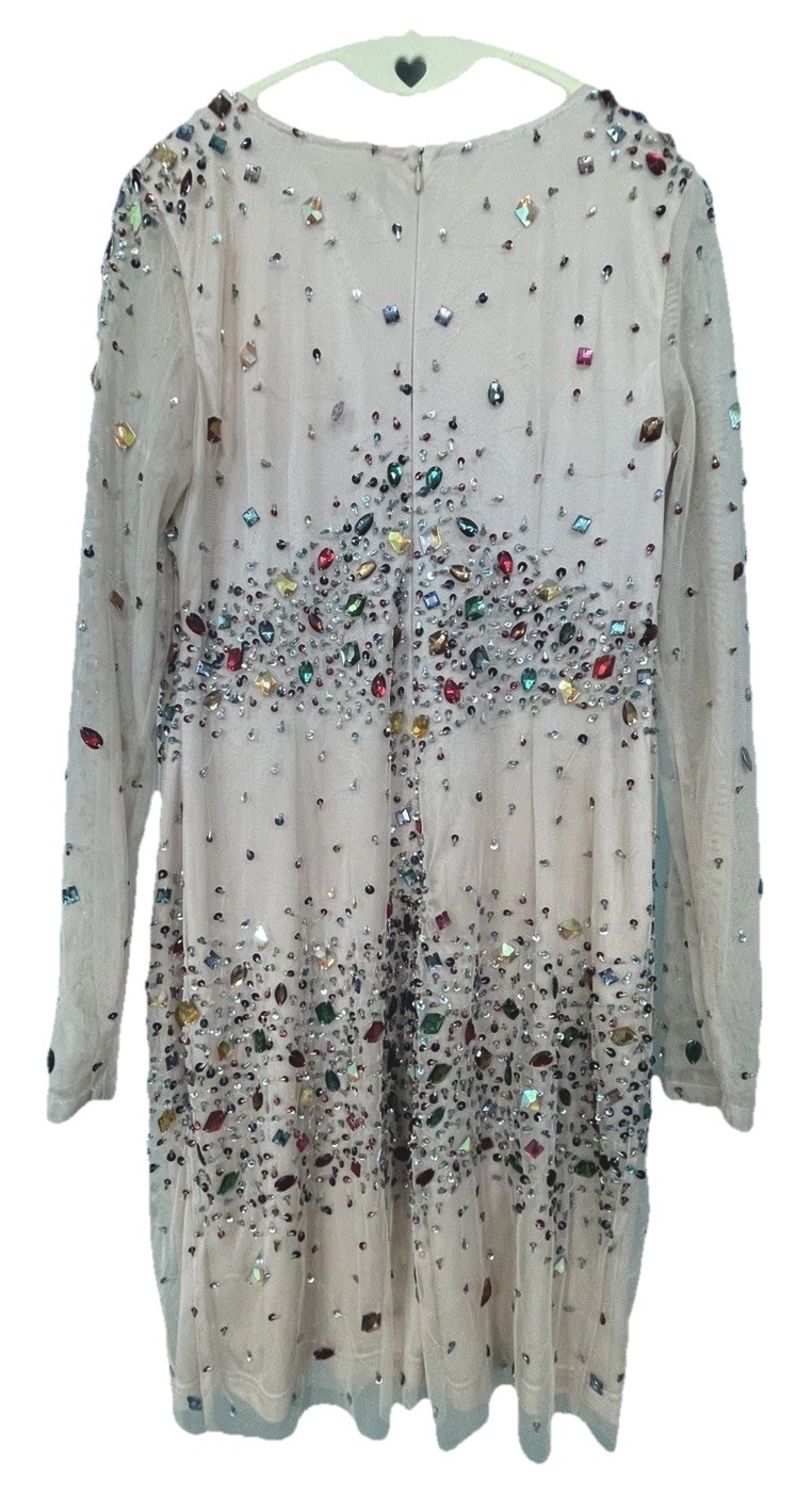 как выглядит NWT Adriana Papell Jeweled Rhinestone Dress - Multicolor Gems Nude Mesh Size 10 фото