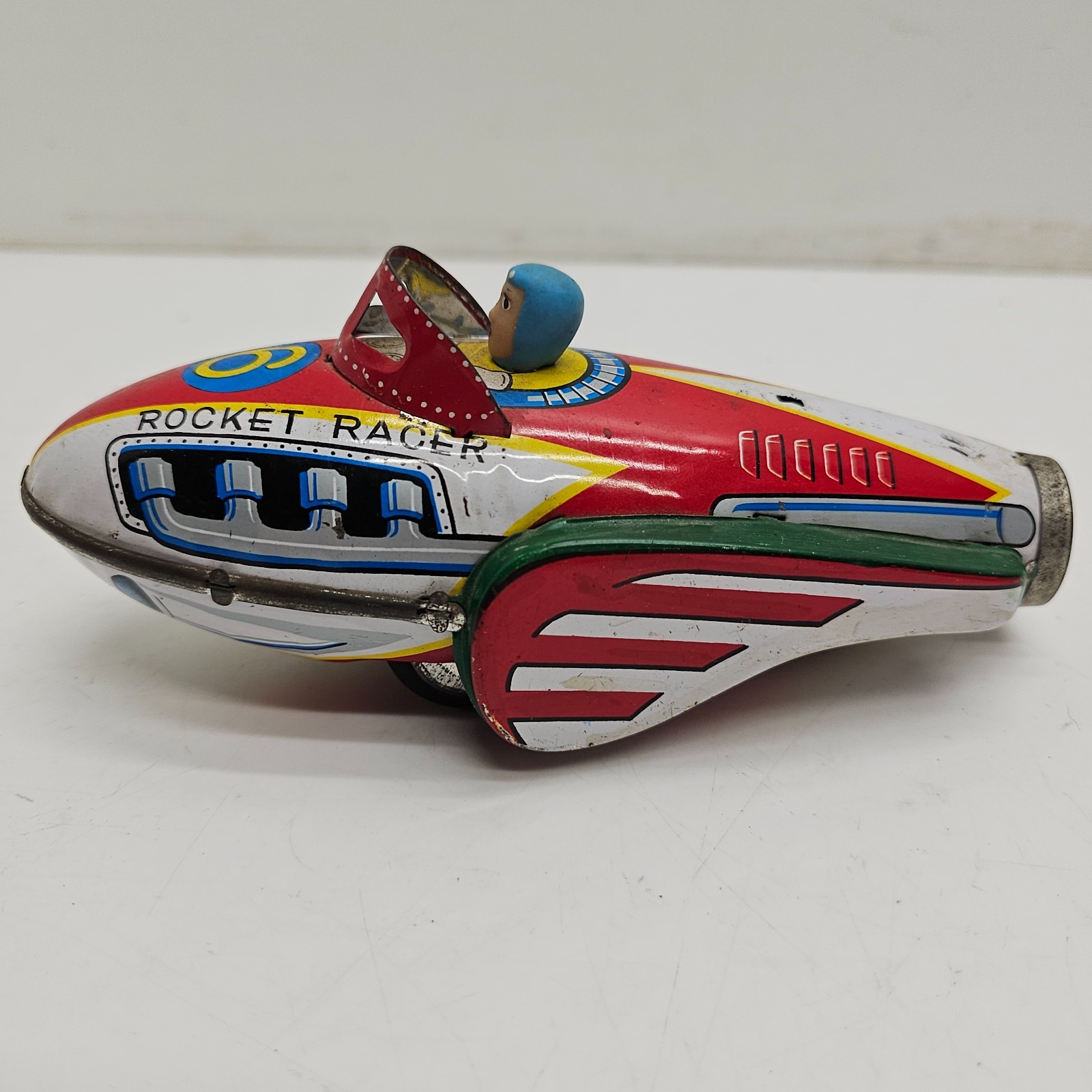 как выглядит Rocket Racer No. 6 Tin Litho Toy Car Red White 5.5" Vintage Space Age фото