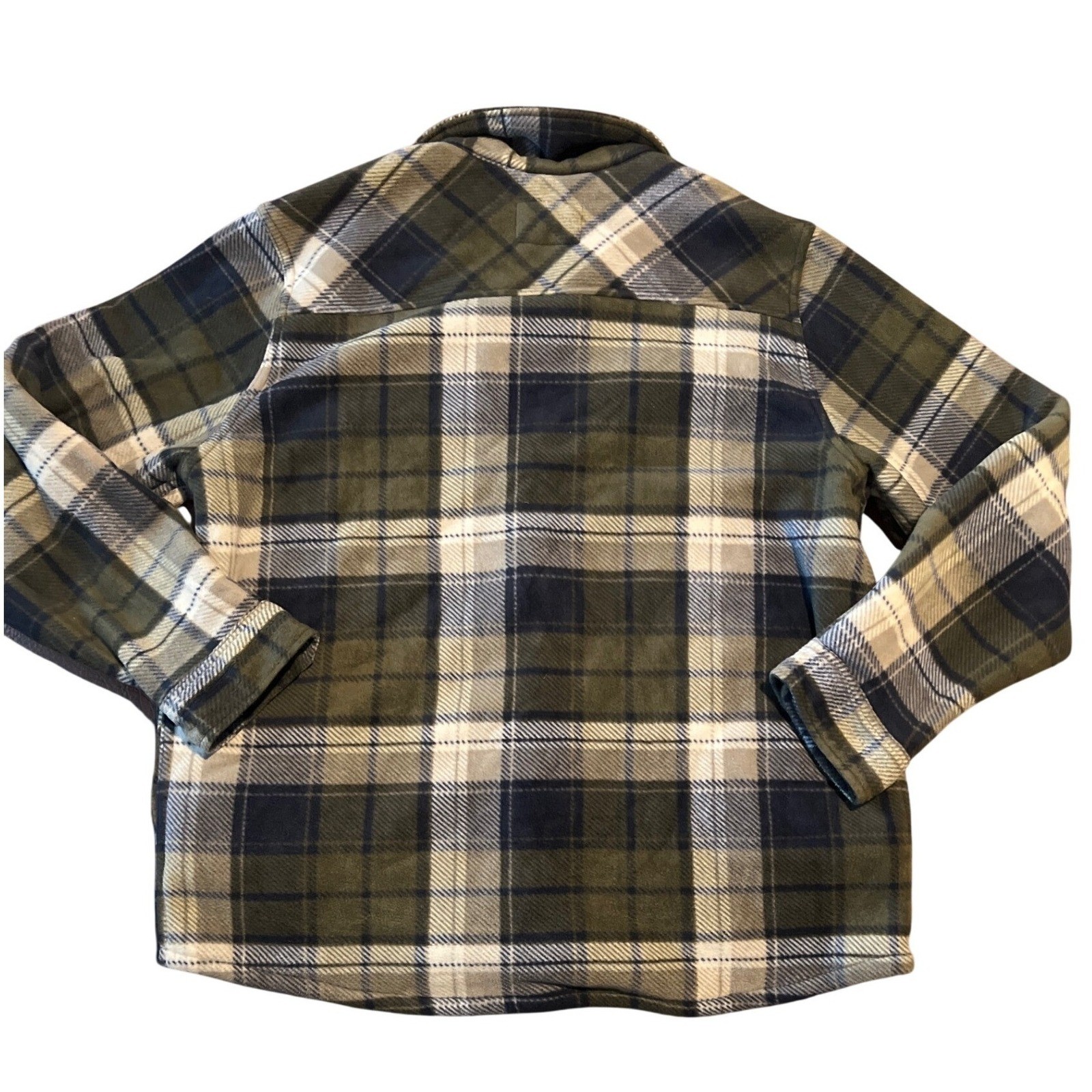 Boston Traders Plaid Sherpa Lined Flannel Shirt Jacket XL Green Navy Shacket