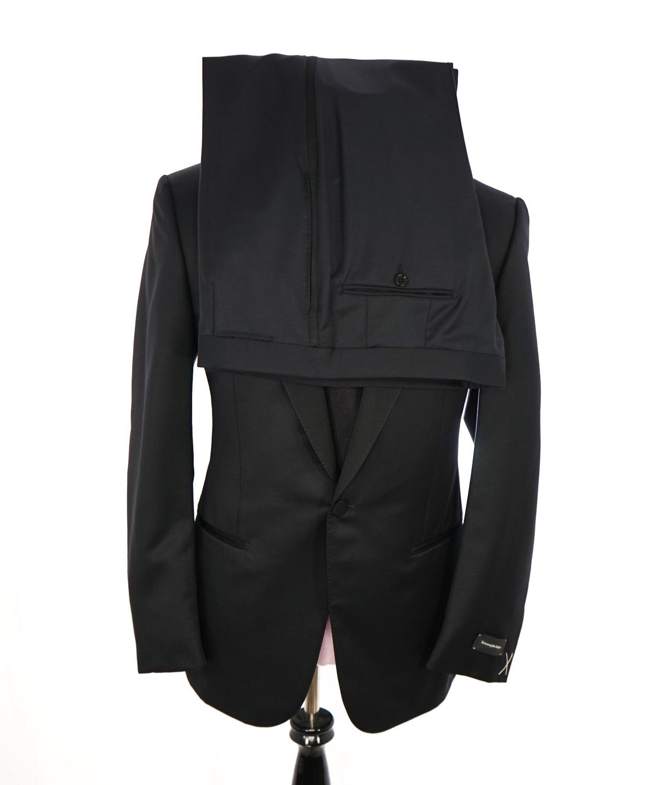 как выглядит 3,995 ZEGNA - "MICROSPHERE" Solid Black Wool Peak Lapel Tuxedo - 46L фото