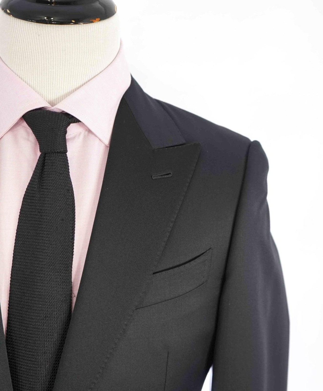 как выглядит 3,995 ZEGNA - "MICROSPHERE" Solid Black Wool Peak Lapel Tuxedo - 44L фото