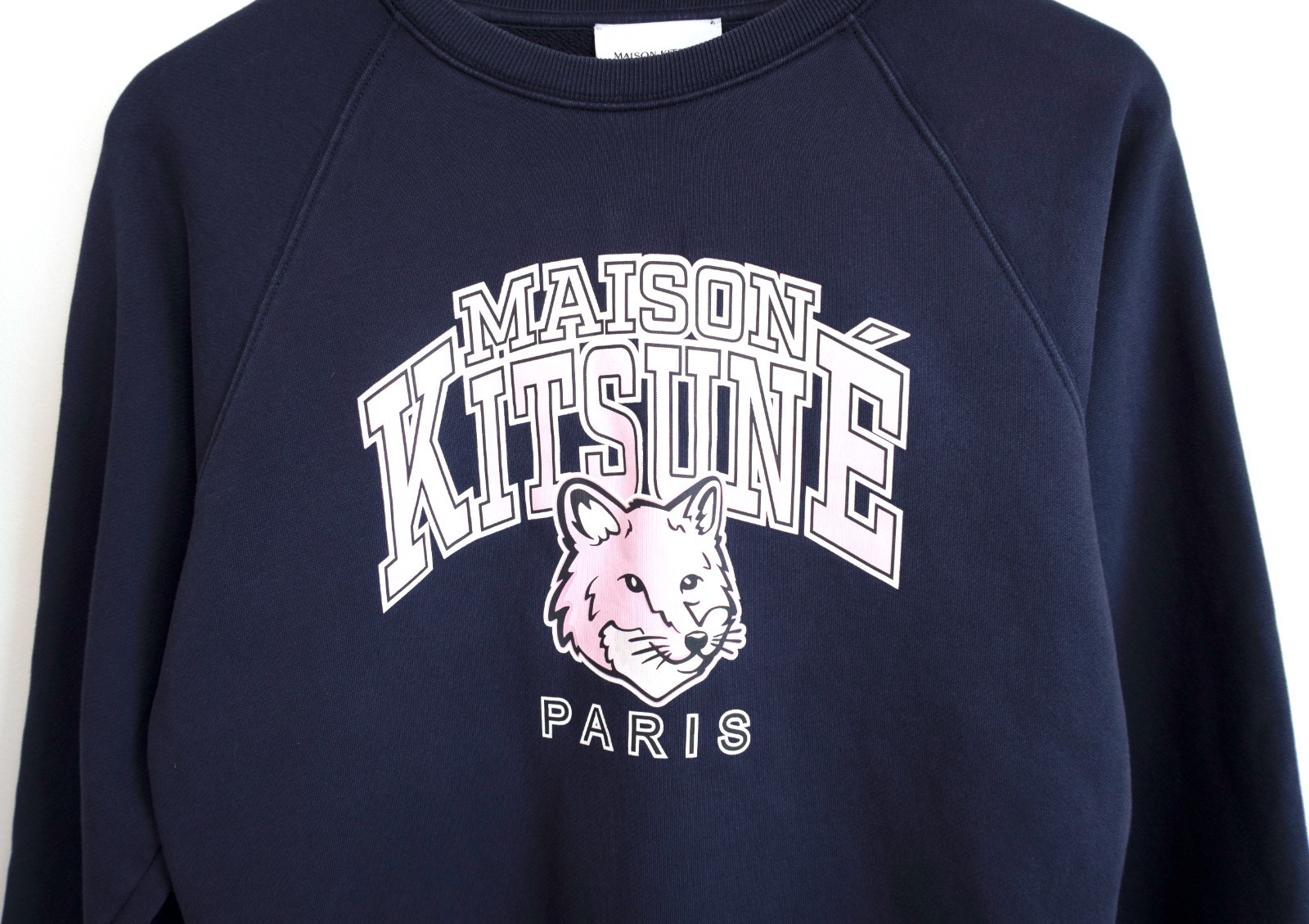 MAISON KITSUNE PARIS Fox Logo Campus Pullover Sweatshirt Navy Farfetch XS 375