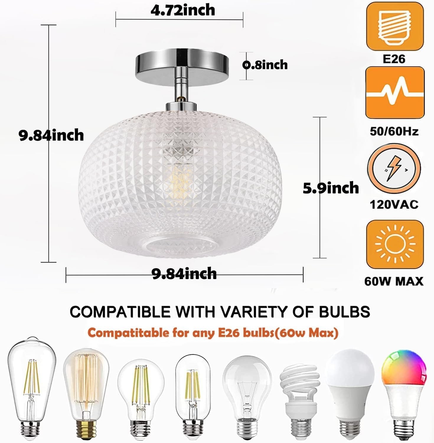 1x Semi Flush Mount Ceiling Light Fixture,Hallway Light Fixture, Globe Glass
