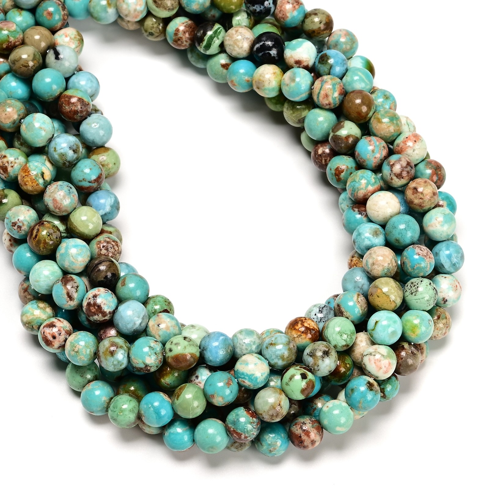 как выглядит Natural Multi-color Turquoise Smooth Round Beads Size 6mm to 15mm 15.5" Strand фото