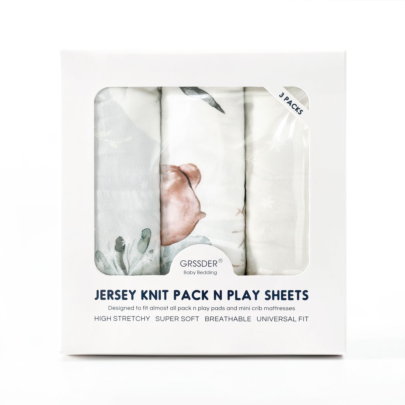 Stretchy Jersey Knit Fitted Pack n Play Sheets 3-Pack, Portable/Mini Crib
