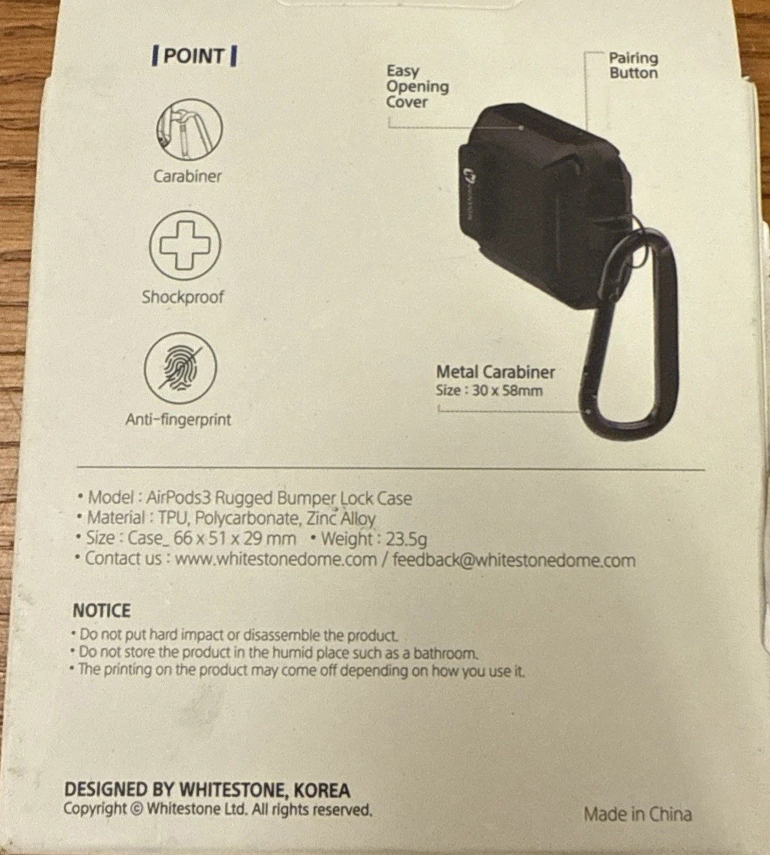 Whitestone Rugged Lock Case Full Body Protective with Carabiner For AirPods 3