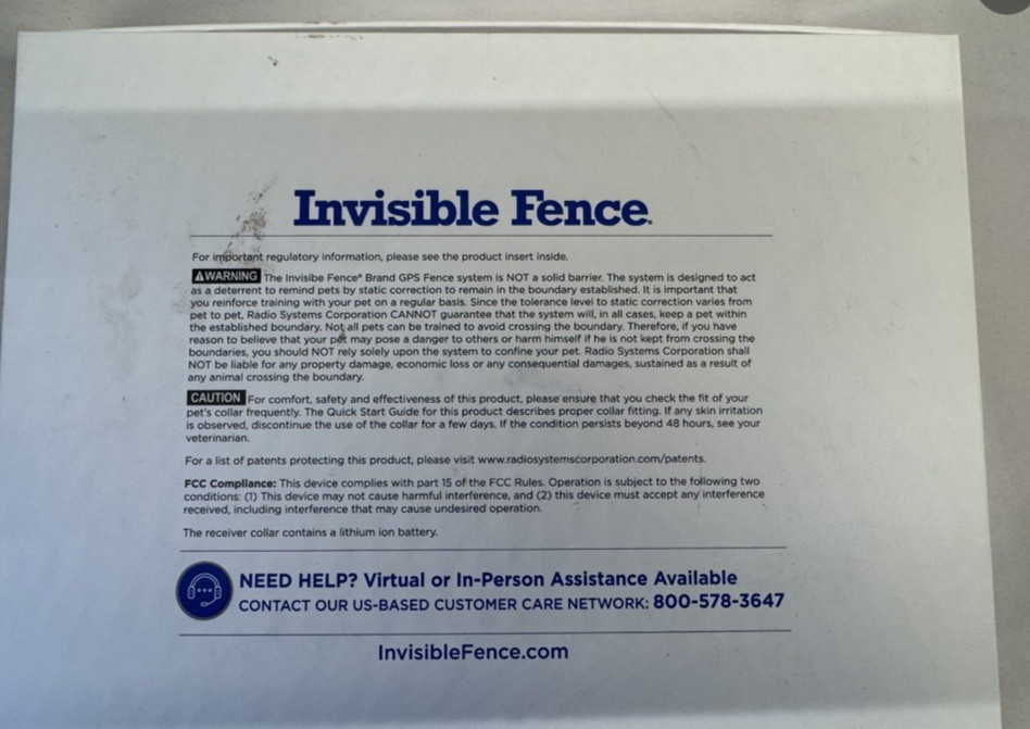 Invisible Fence GPS Fence Dog Collar Wireless Containment Boundary RIF00-17942