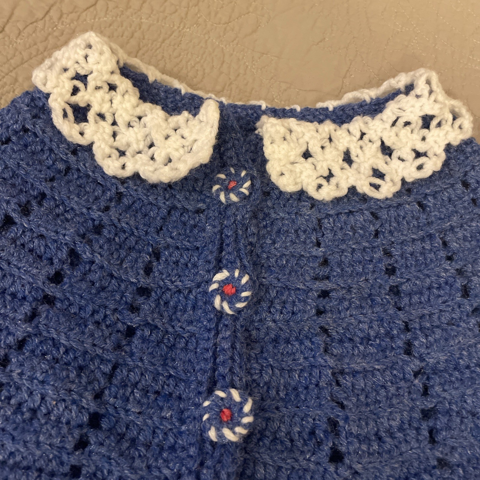 как выглядит Vintage Handmade Crochet Womens Poncho Cape Granny Cottage Shawl Knit Blue фото