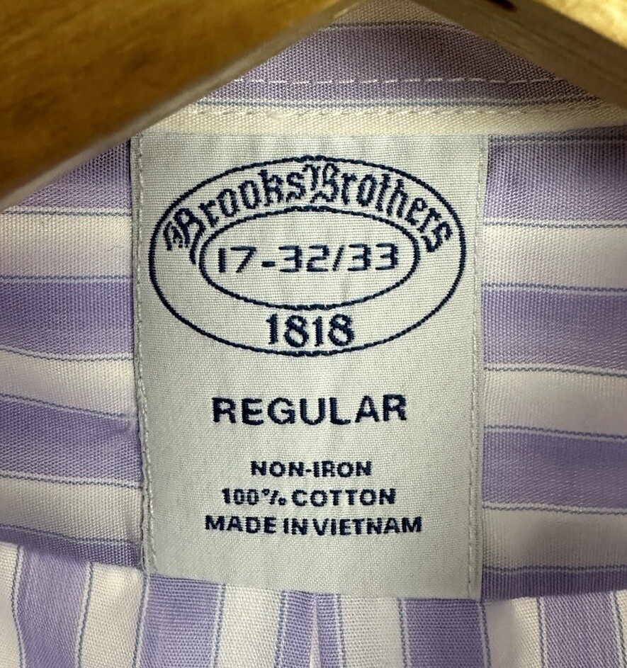 Brooks Brothers Dress Shirt Mens 17 32-33 Button-Up Purple White Striped Cotton