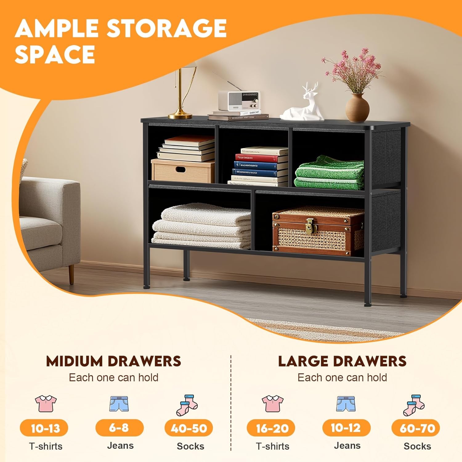 Curved Black Dresser for Bedroom with 5 Drawers Storage Drawers Organizer Unit