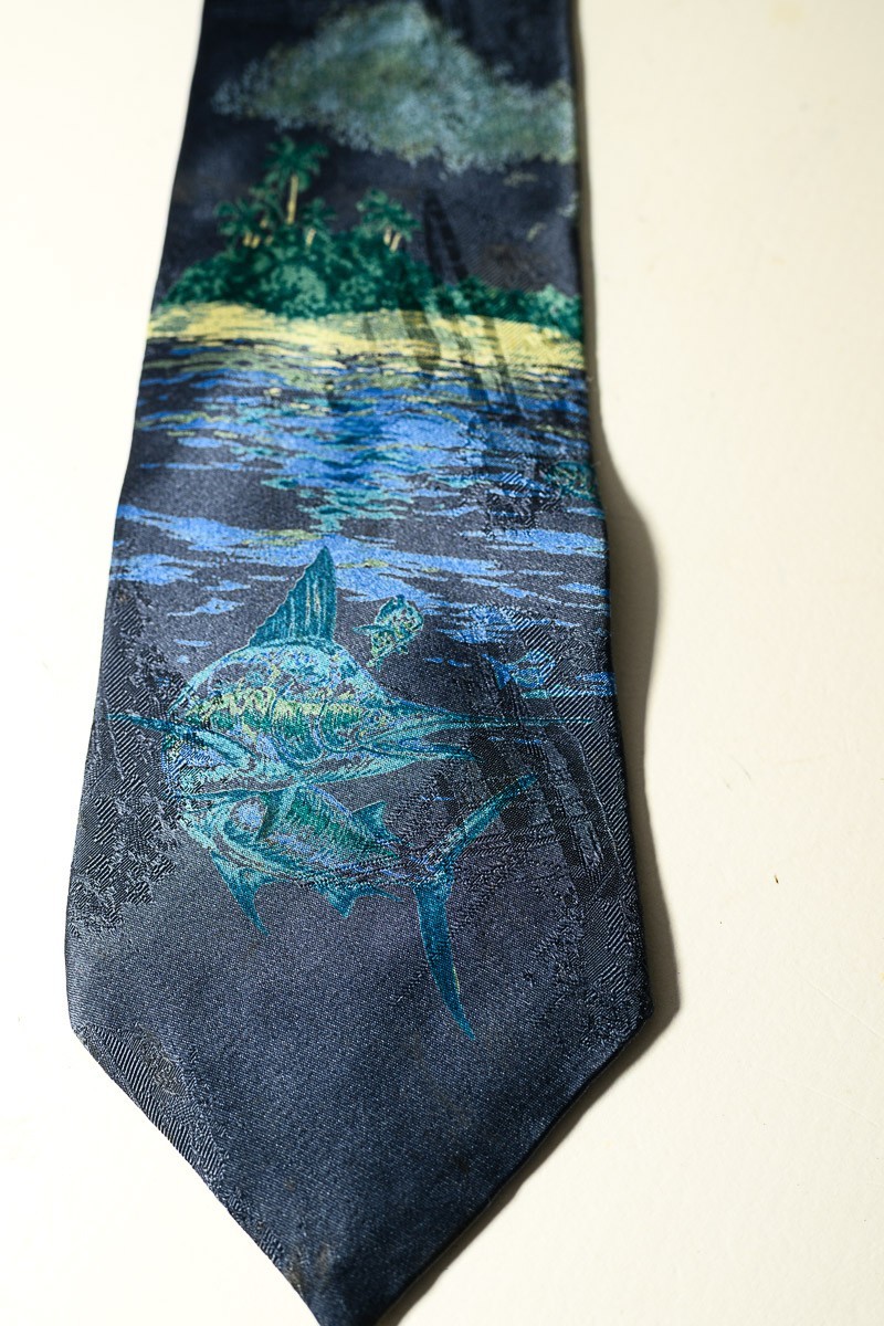 как выглядит Vintage Silk made in USA blue tie Tropical fish beach scene фото