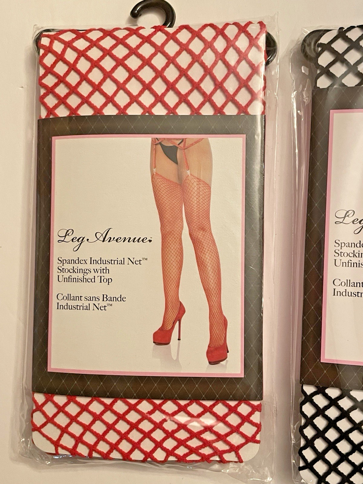 3 pr. Thigh High Fishnet Stockings: Black, Red, and White industrial net