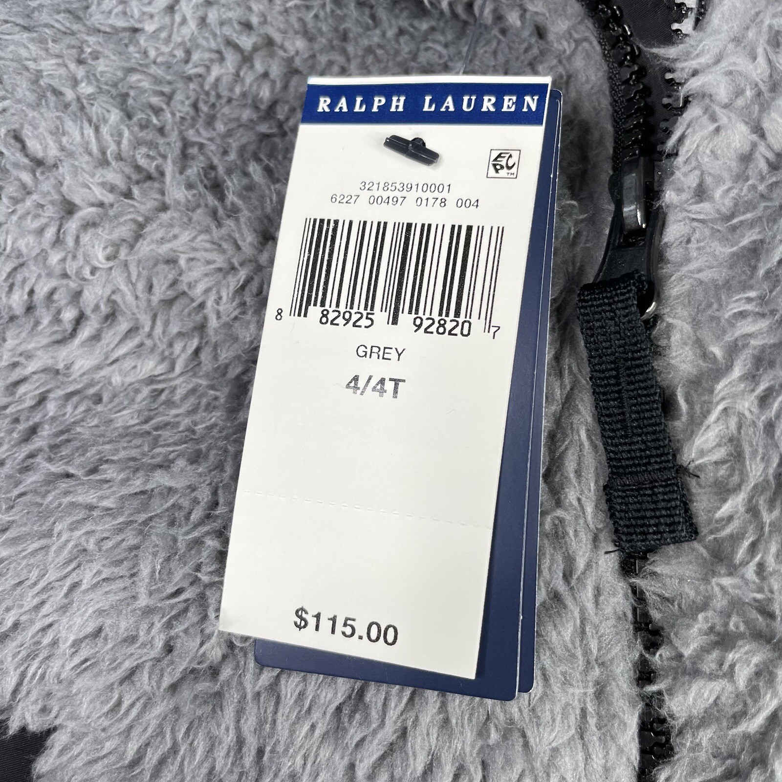 Polo Ralph Lauren Toddler Boys 4T Teddy Sherpa Fleece Grey Hooded Jacket