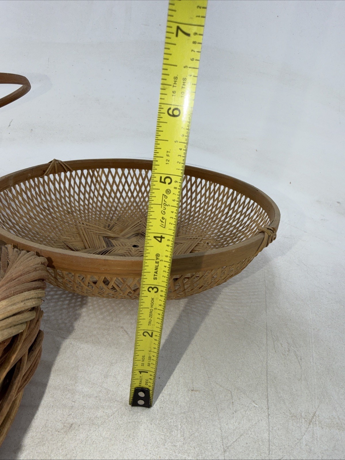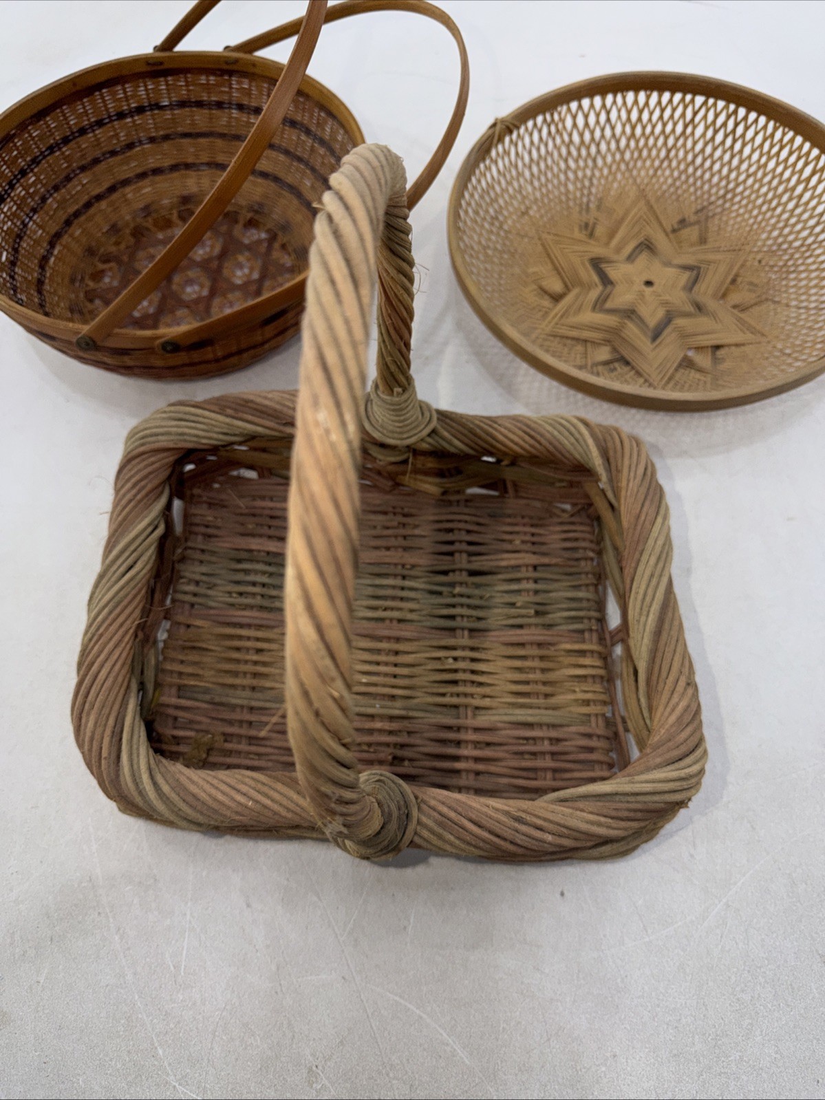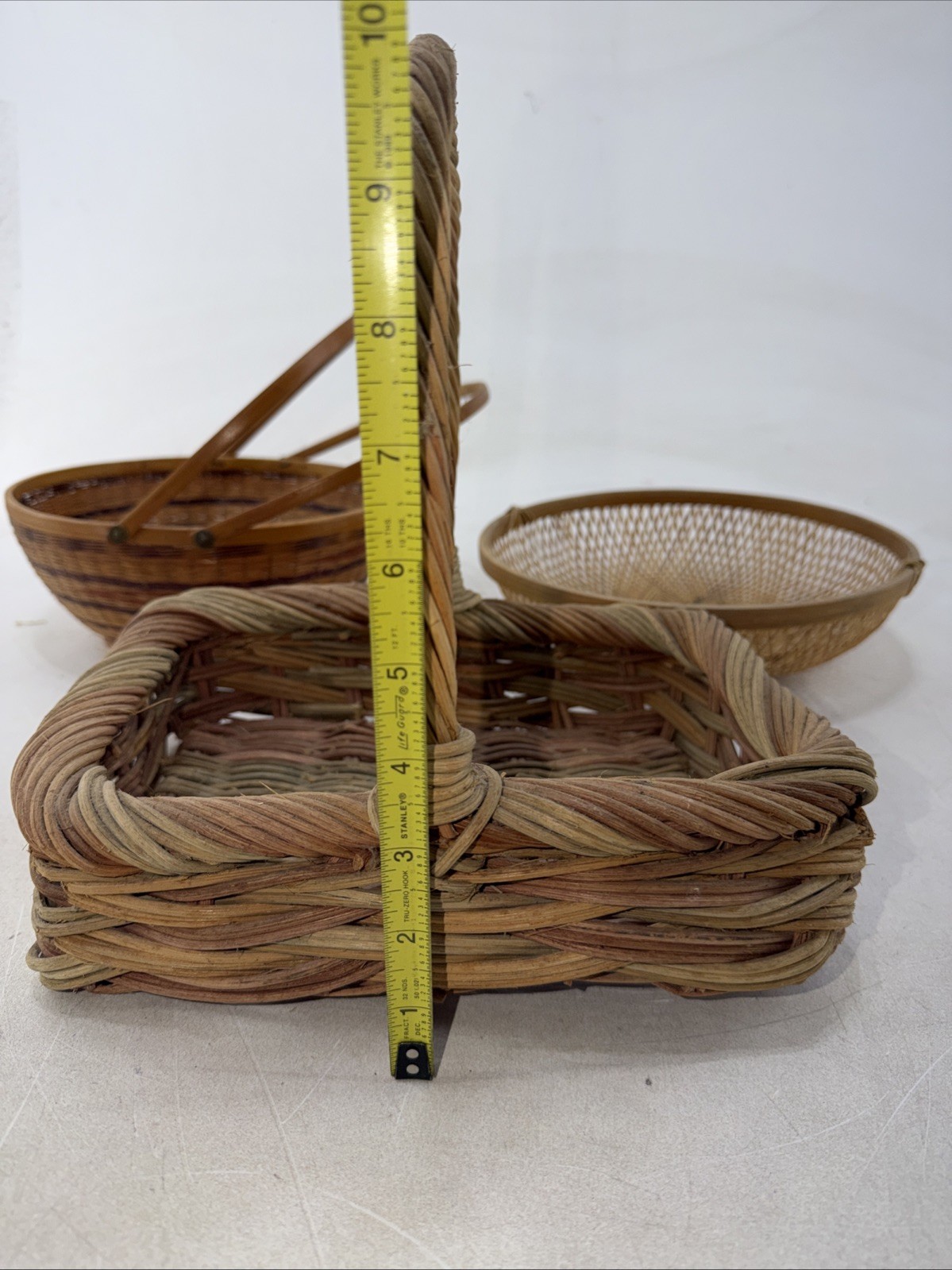 Woven Bamboo Baskets Lot of 3 Small/Med Square Trinket Organizer Storage