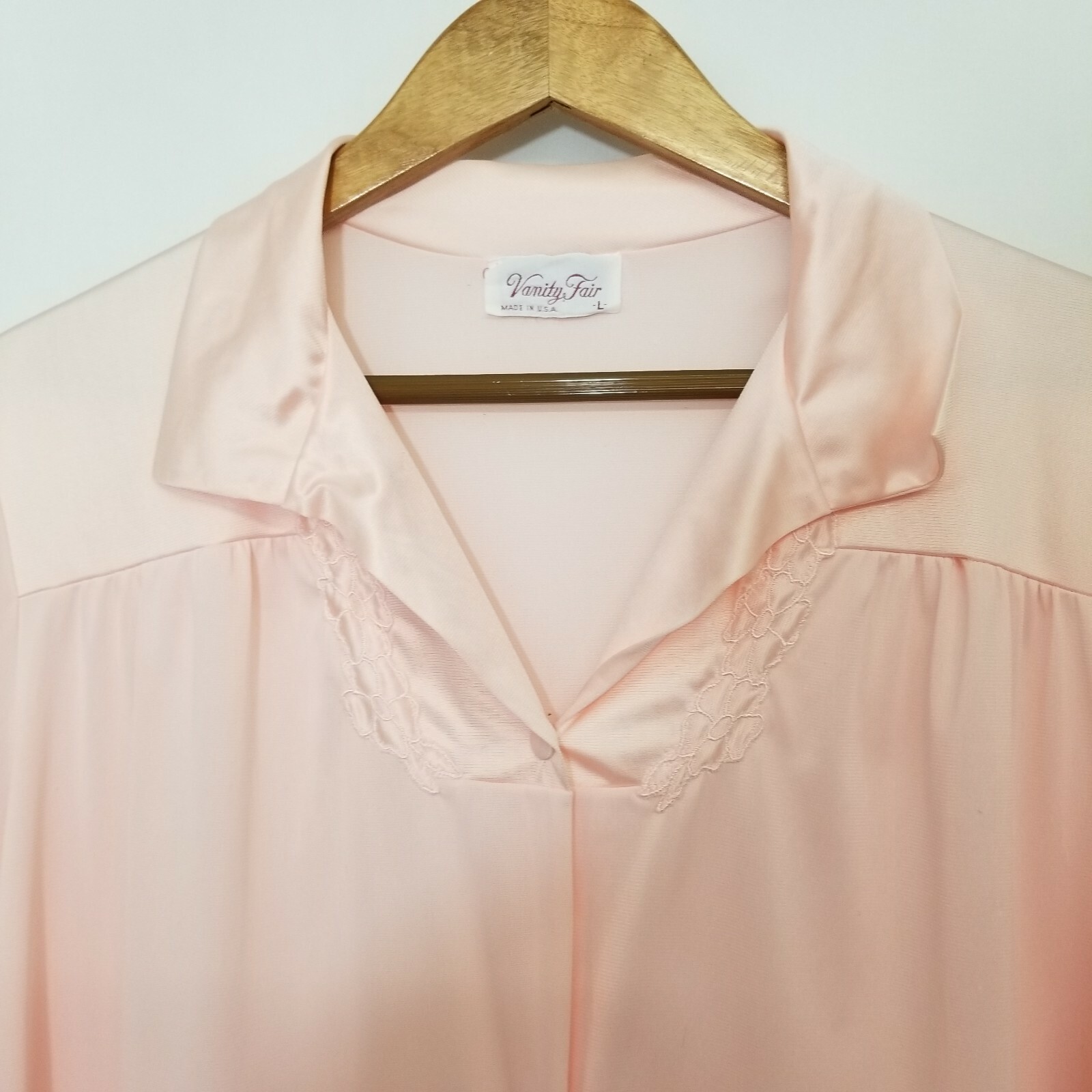 как выглядит Vintage Vanity Fair Pink Dupont Nylon Collared Mid Length Nightgown Made in USA фото