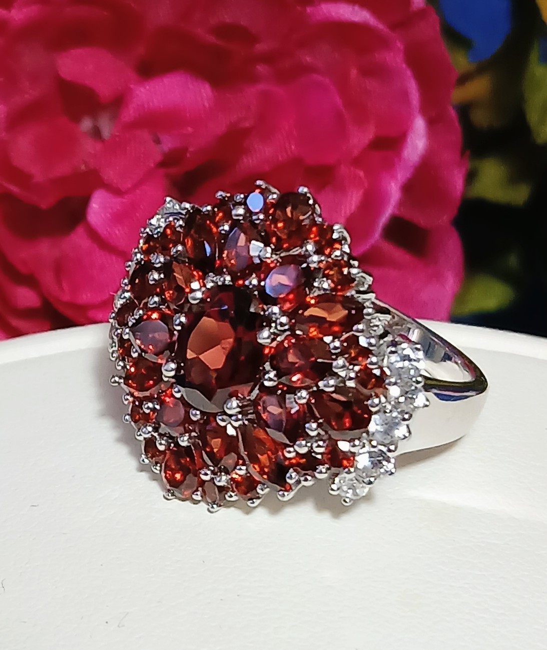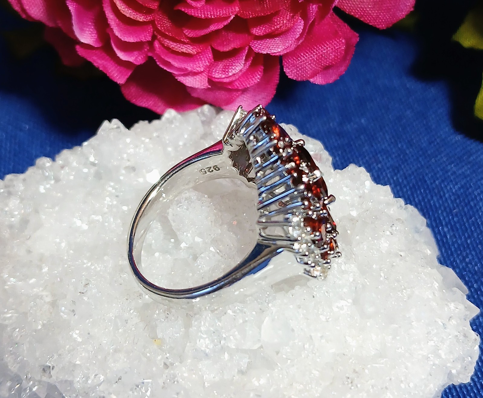 GORGEOUS Vintage Solid .925 Sterling Silver VERMELHO GARNET ZIRCON Flower Ring