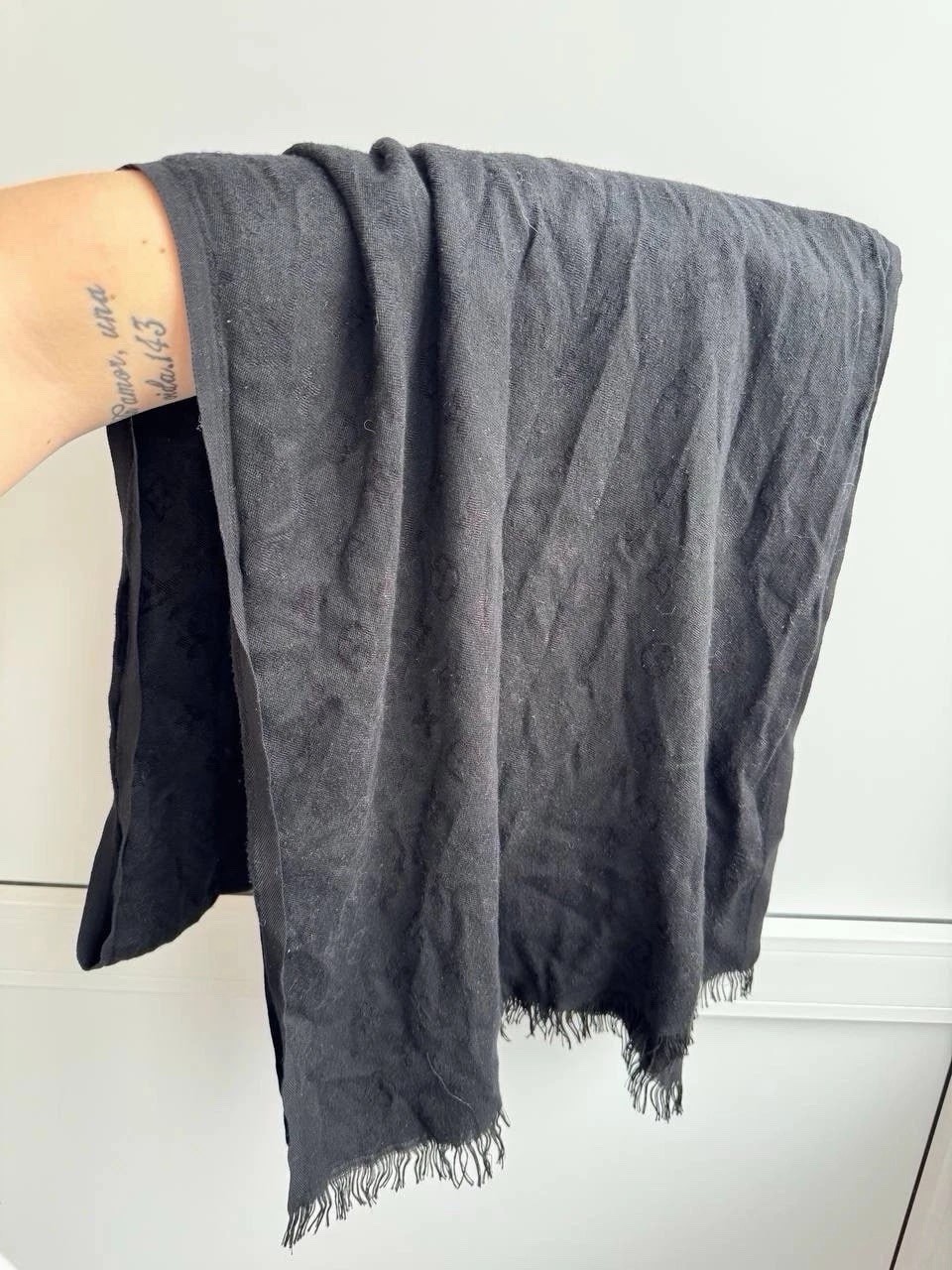 как выглядит 1Louis Vuitton Italy Silk Monogram LV Gray Long Scarf Shawl39 фото
