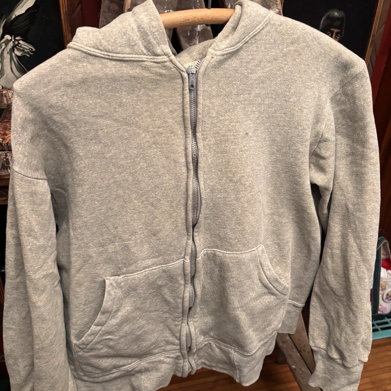 как выглядит Vintage 1960s Hoodie Full Zip Heather Grey Blank Cotton 21 X 19.5 фото