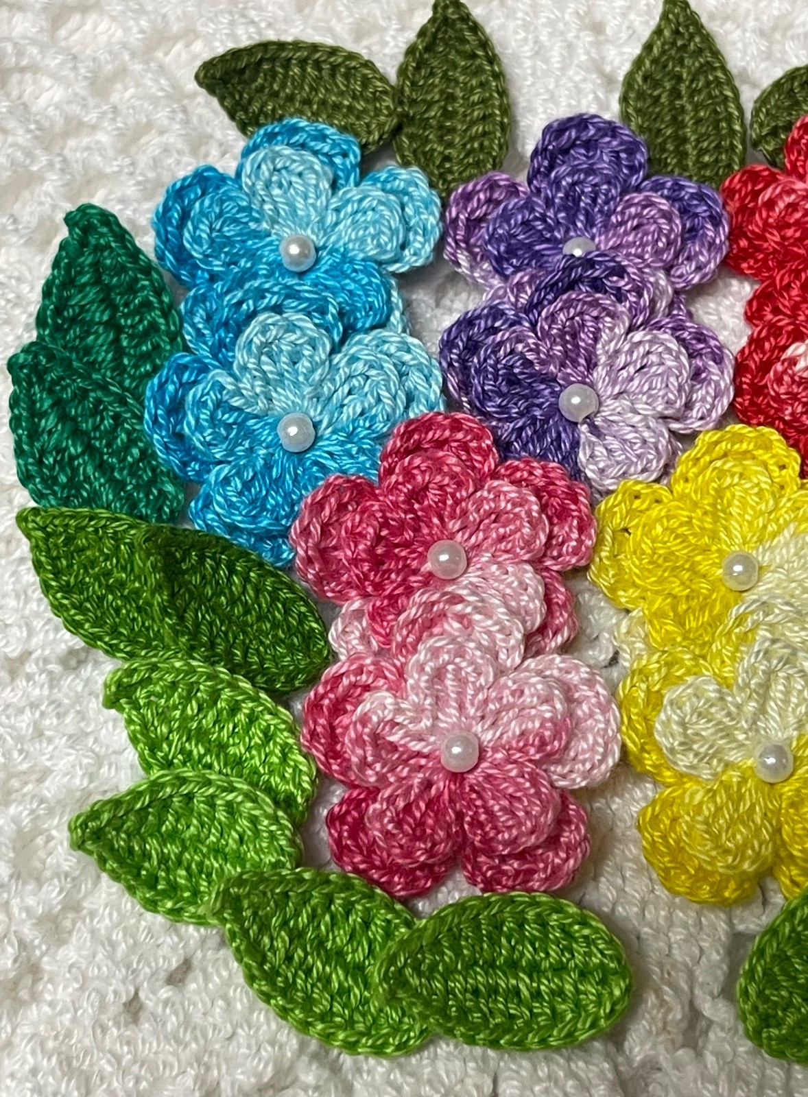 VARIEGATED COLORS - Two Layers Crocheted Flowers Leaves Appliqu Embellishment
