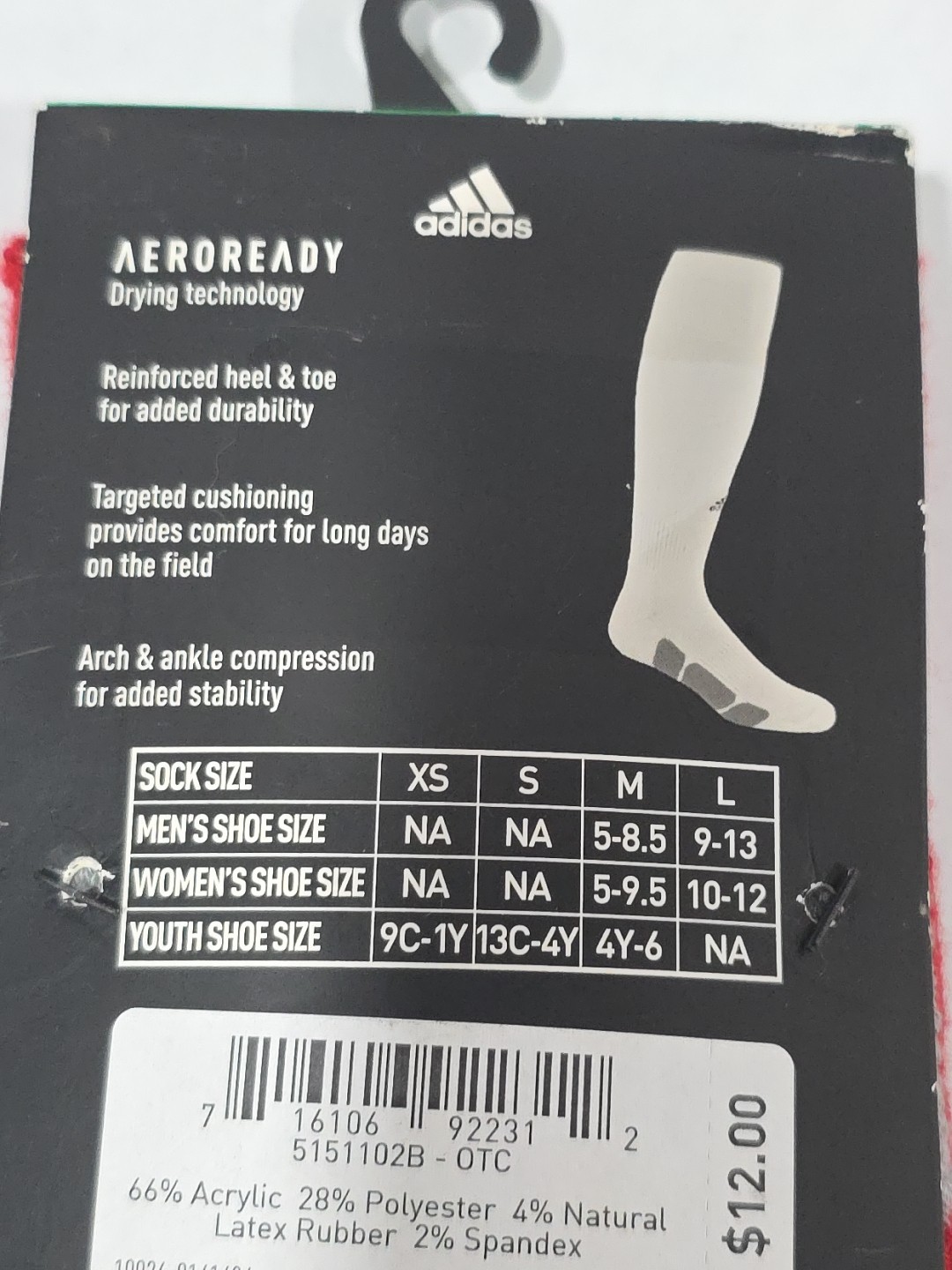 Adidas Compression OTC Baseball/Softball Socks Youth Shoe Size S 13c-4y Red
