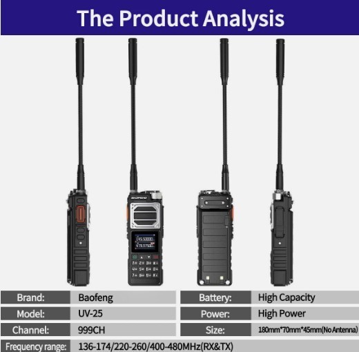 как выглядит Baofeng UV-25 Tri-Band 10W Radio GPS Multi-Band RX 5200mAh USB-C 1000CH фото