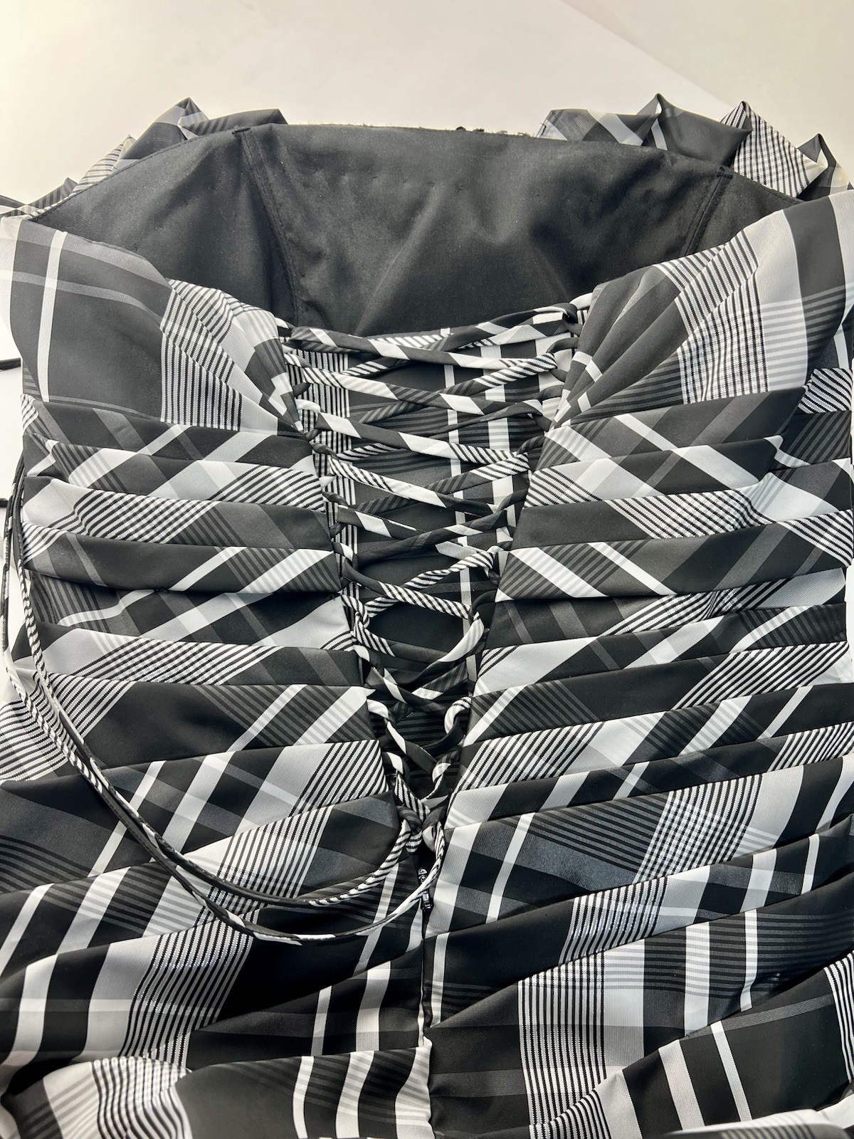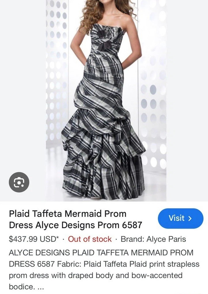как выглядит ALYCE DESIGNS 439 Plaid Taffeta Mermaid Dress Strapless Black, White Gown Sz 4 фото