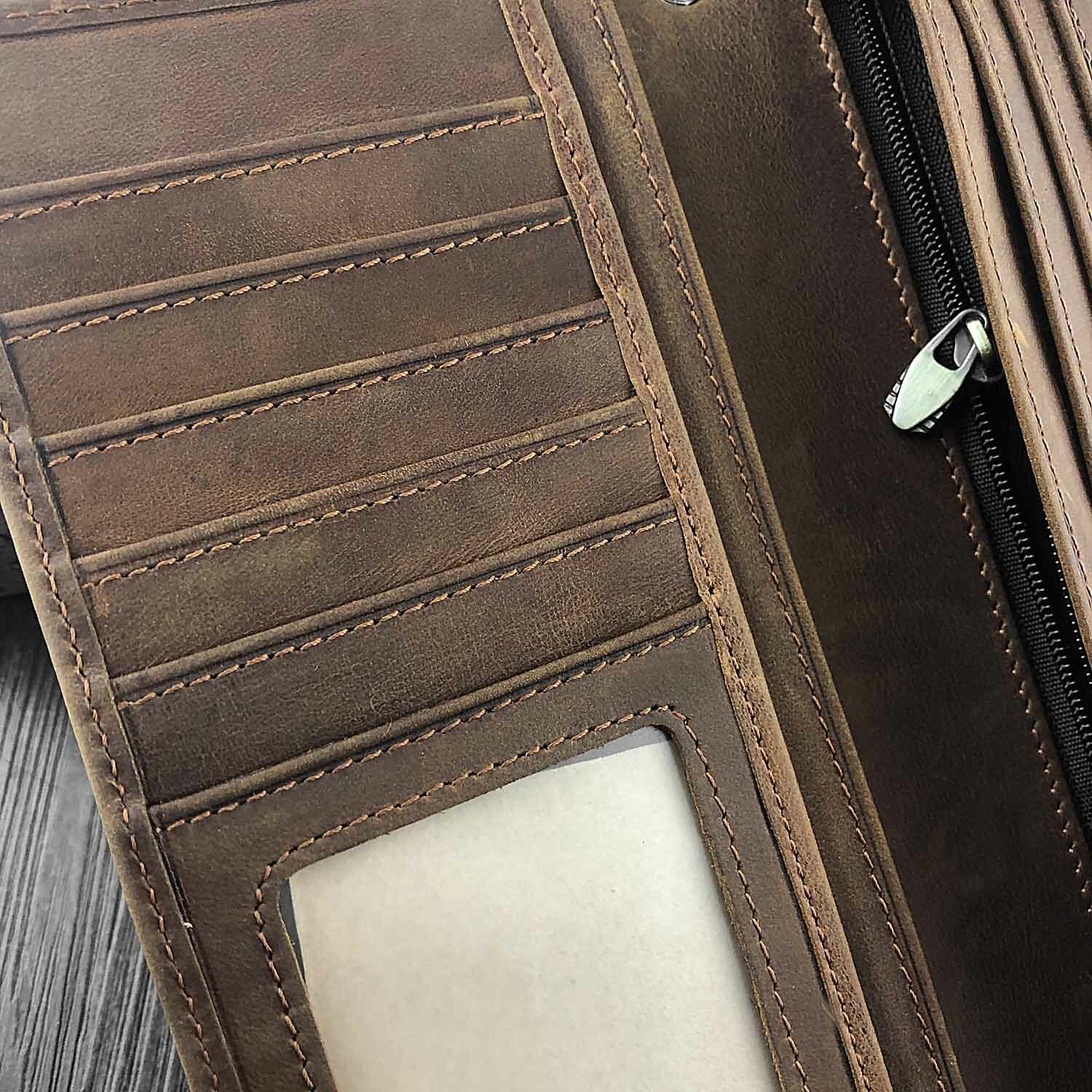 Men's Biker Crazy Horse Leather Long Chain Wallet Multi-card Coin Wallet Purse