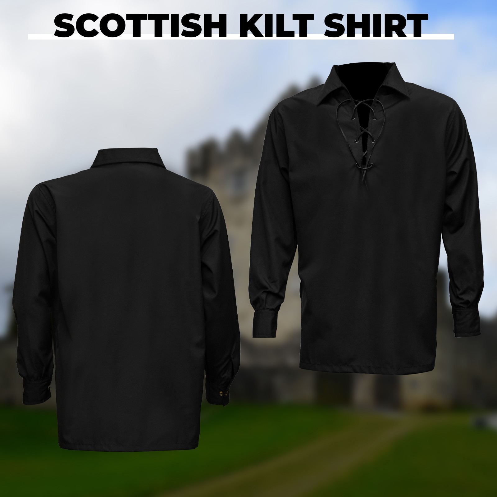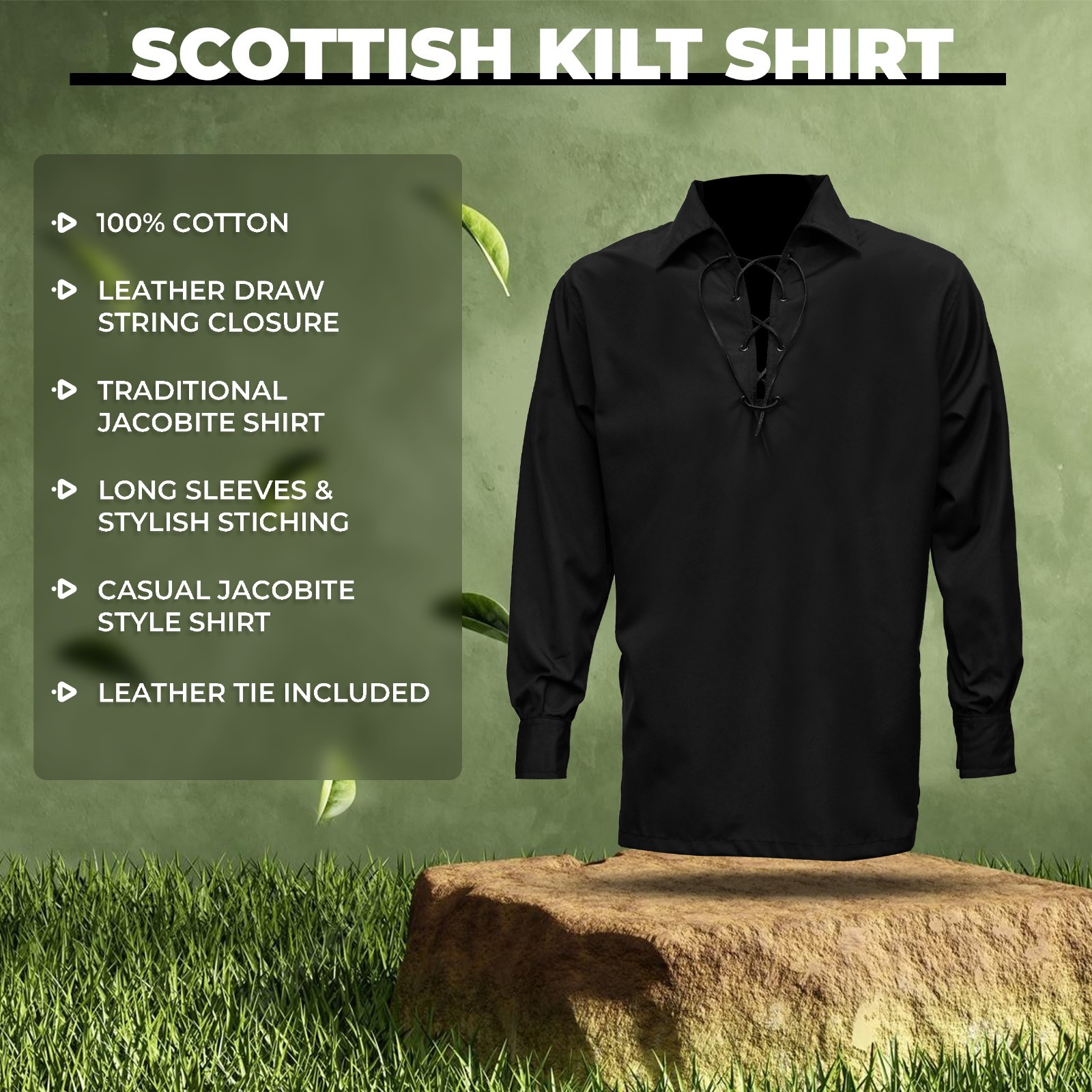HIGHLAND REDSTONE Jacobite Shirt for Men Scottish Ghillie Kilt Shirt Long Sleeve