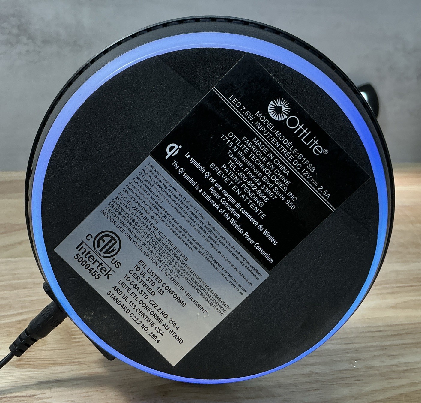 OttLite LED Desk Lamp LCD Time Date Alarm W/ USB Wireless Mag Charger, B1FSB