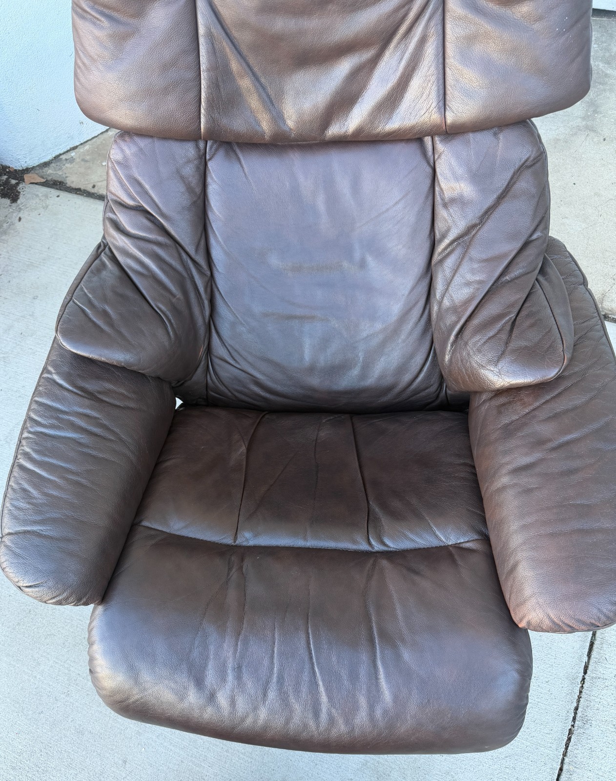 как выглядит Ekornes Stressless RENO Brown Leather Swivel Recliner Chair Ottoman MEDIUM фото