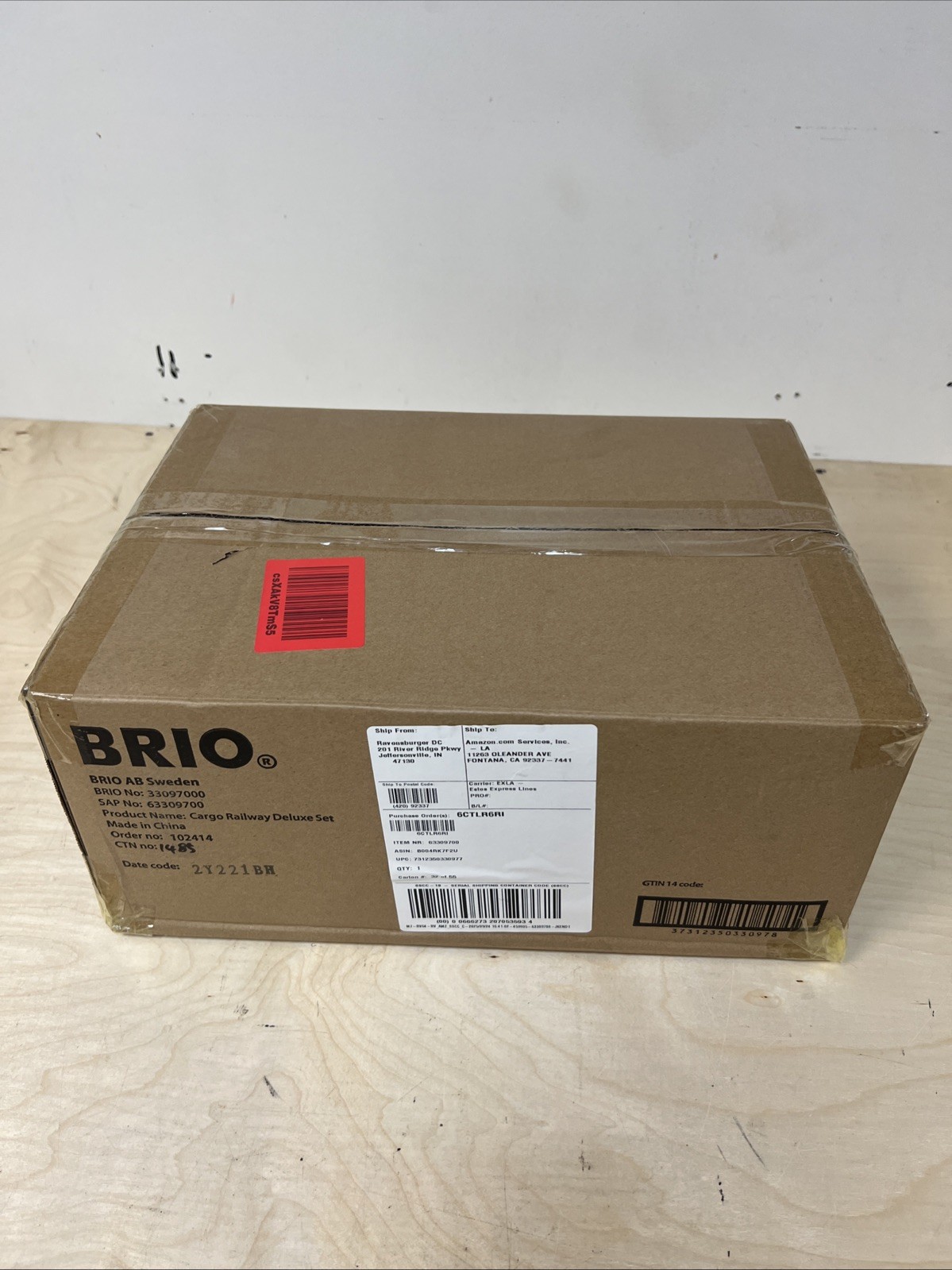 NEW. IN BOX. BRIO WORLD CARGO RAILWAY DELUXE SET. WOODEN TRAIN SET. Model 33097