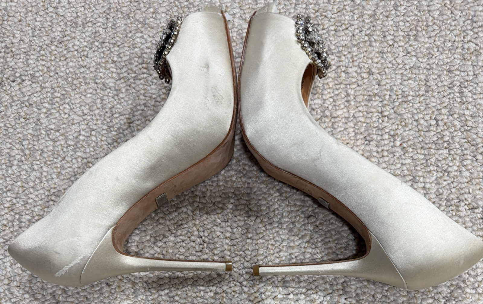 как выглядит Badgley Mischka Womens open Toe Satin Shoes Heels Size 7.5 фото