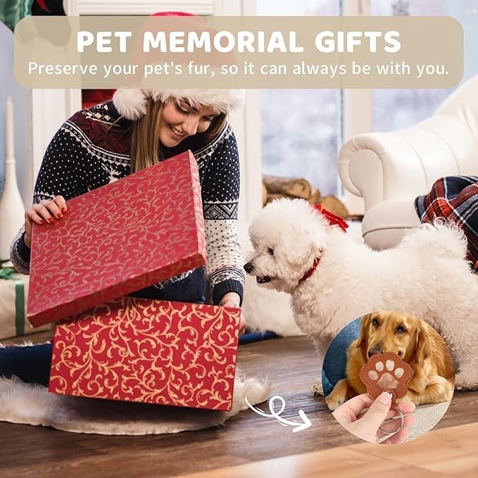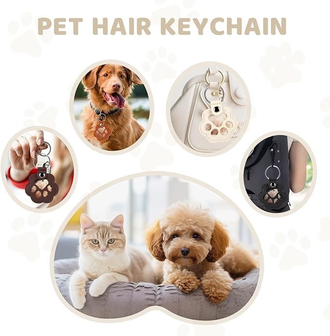 Dog Cat Hair Collector Keychain, Leather Paw Shaped Pet fur Keepsake, Memorial
