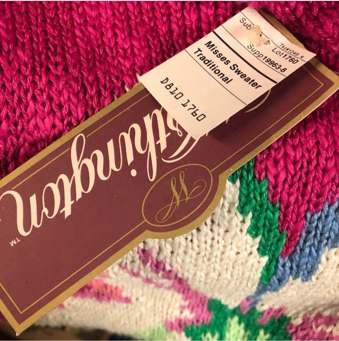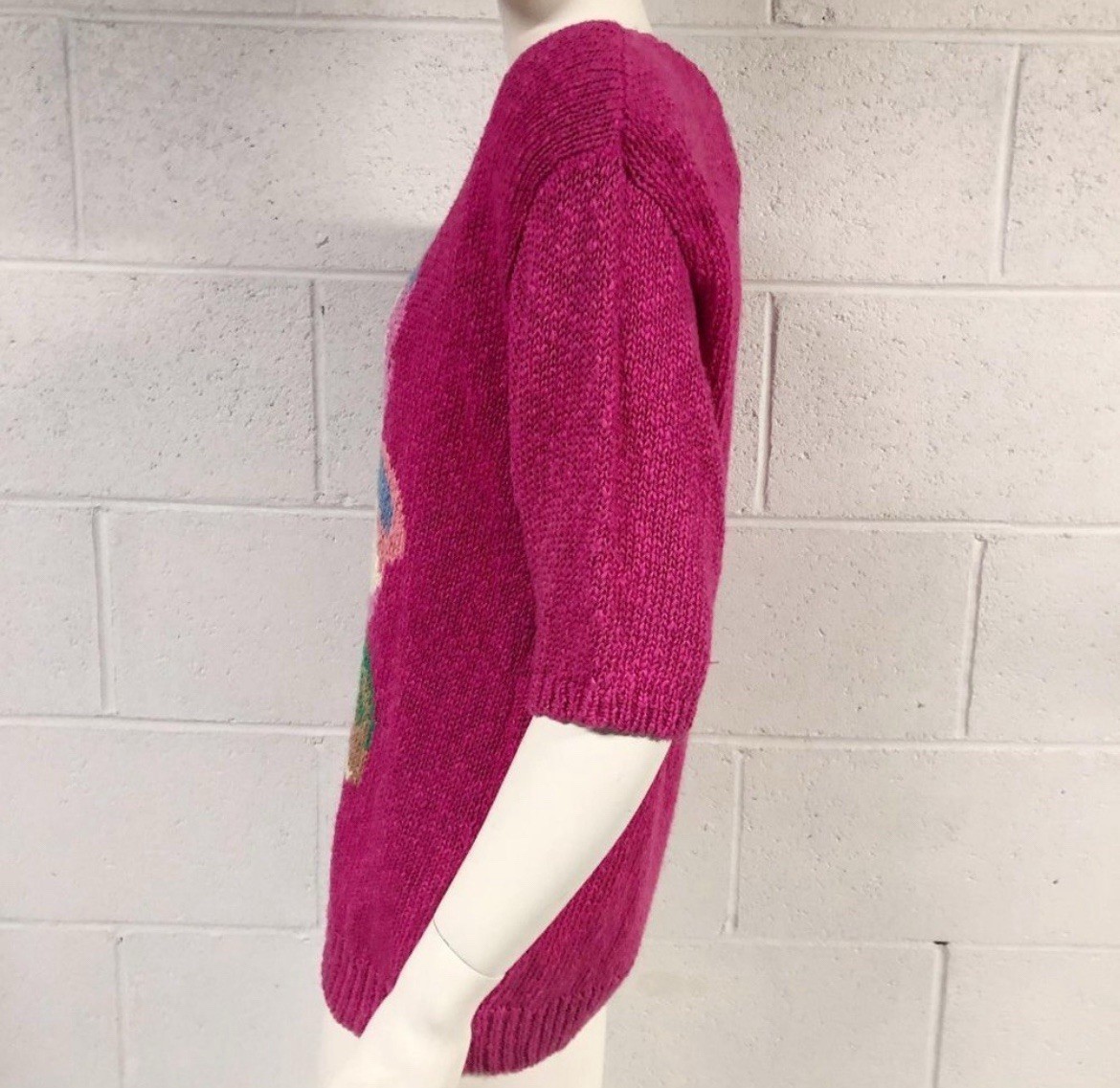 как выглядит Vintage Worthington Short Sleeve Pullover Sweater Magenta Floral - Sz Lg NWT фото