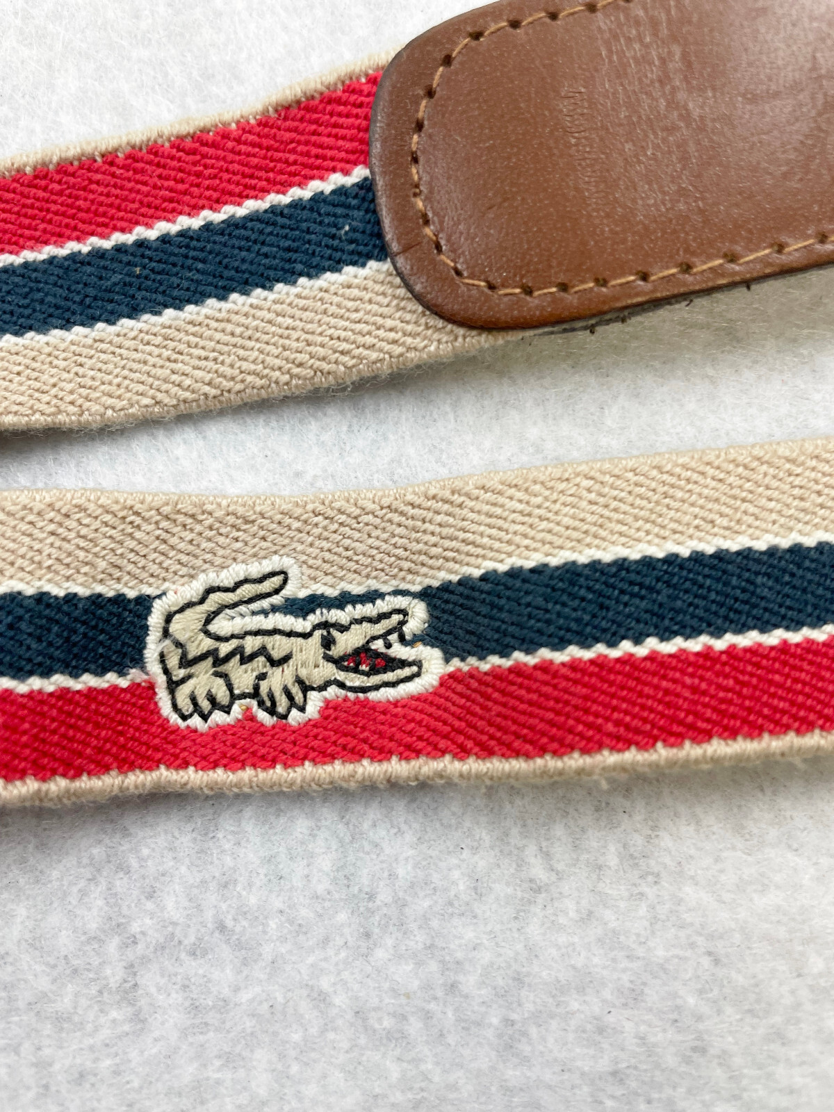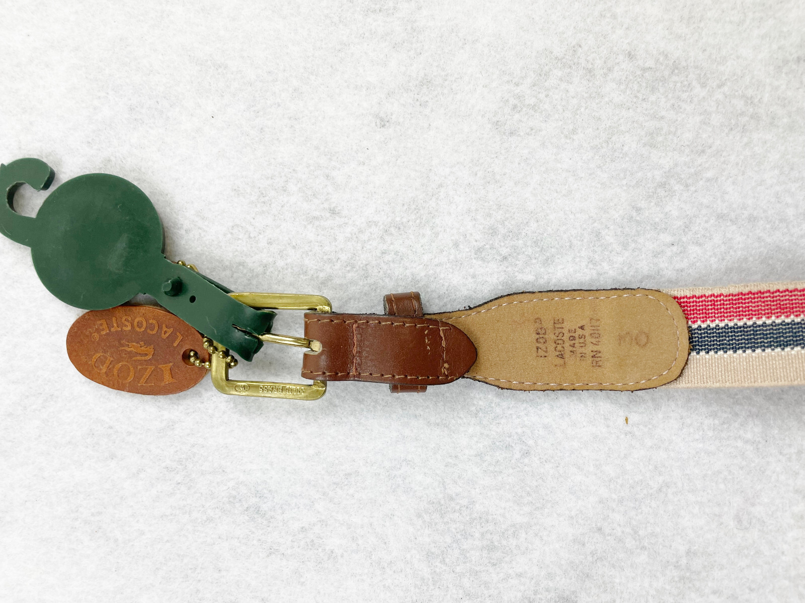 как выглядит VINTAGE LACOSTE ALLIGATOR TAN, RED, BLUE BELT - SIZE 30 LENGTH - NOS фото