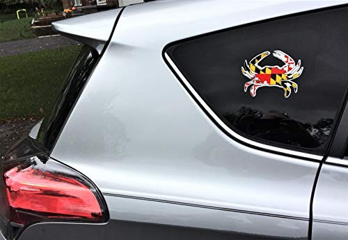 Maryland Flag Crab Sticker - 4 MD Vinyl Stickers - 2 Flags 3x5 2 Crabs 5x6