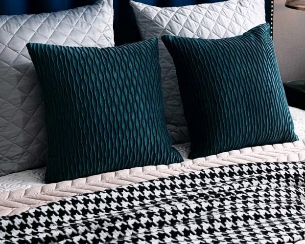 как выглядит DEZENE 17x17 Teal Throw Pillow Cases: 2 Pack Original Striped Velvet Square Teal фото