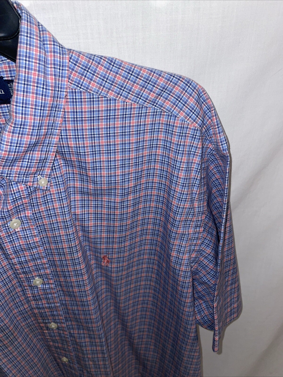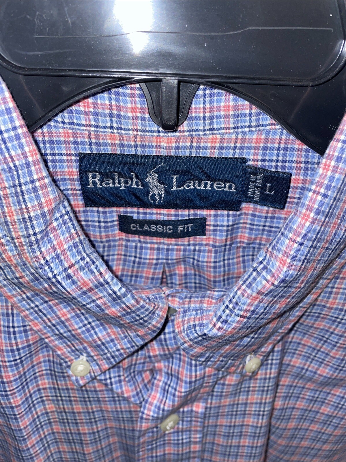 Polo Ralph Lauren Mens Dress Shirt Size Large Blue Pink Striped Business Formal