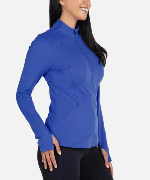 Spyder Women's Stretch Long Sleeve Zip Up Yoga Jacket with Thumbholes Blue Large